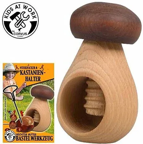 Nussknacker oder Kastanien-Halter zum Bohren und Basteln. Naturholz in Pilz Optik. Sehr schön gearbeitet.Höhe 10cm; europaeisches Buchenholz/Leinoel