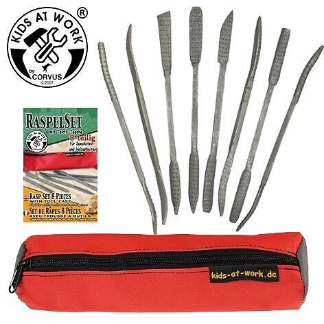 8 Doppelraspeln für die Bearbeitung von Speckstein und Holz. Gute Stahlqualität. Mit passendem (Schlamper-) Mäppchen, 24 cm lang, Durchmesser 5cm, robustes Textilgewebe aus Polyester. Achtung! Dies ist kein Spielzeug im Sinne der Spielzeugrichtlinie! Funktions...
