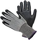 Schnitthemmende Handschuhe zum Schnitzen. Klasse Sache! Strickhandschuhe grau, Spezialfaser, silikonfrei, schwarze PU-Beschichtung auf Innenhand und Fingerkuppen. Altersempf.: 12-14 Jahre
