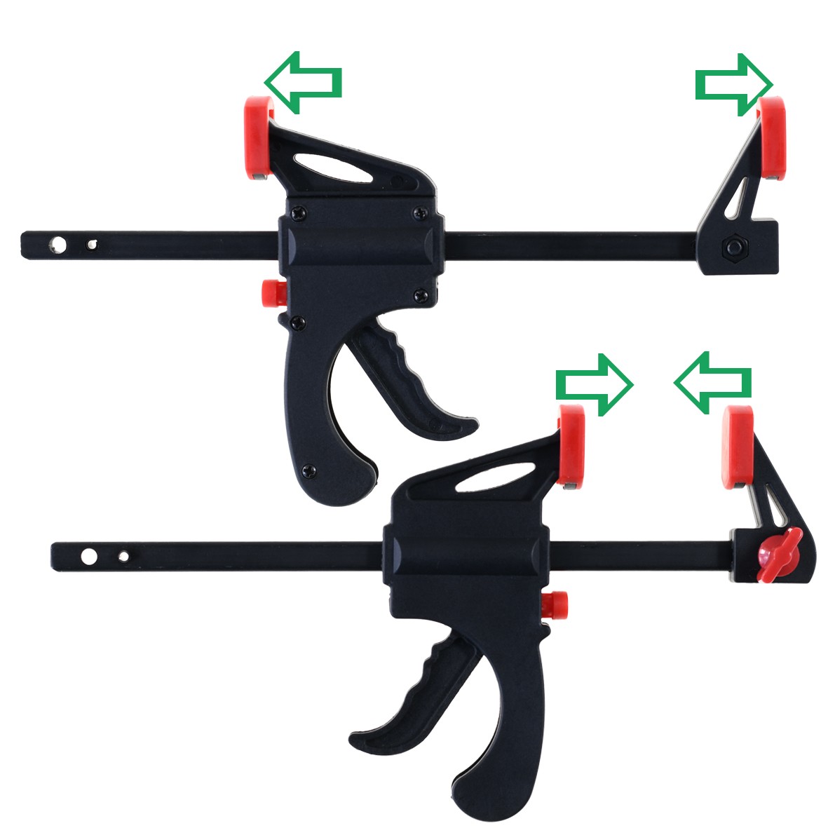 Kleiner handlicher Helfer, einhändig zu bedienen. DieKlemme kann leicht von Spannen (zusammendrücken) aufSpreizen (auseinanderdrücken) umgebaut werden. Bestens geeignet zum Fixieren von geklebten oder geleimten Werkstücken. Spannweite 10 cm. Inhalt: 1 x Schnel...