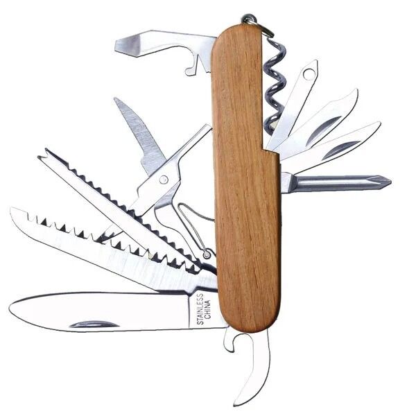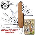 Prima Taschenmesser, viele sinnvolle Funktionen, stabil und wertig. Abgerundete Messerspitze! Das Holz des Messers kann man mit etwas Olivenöl einlassen.