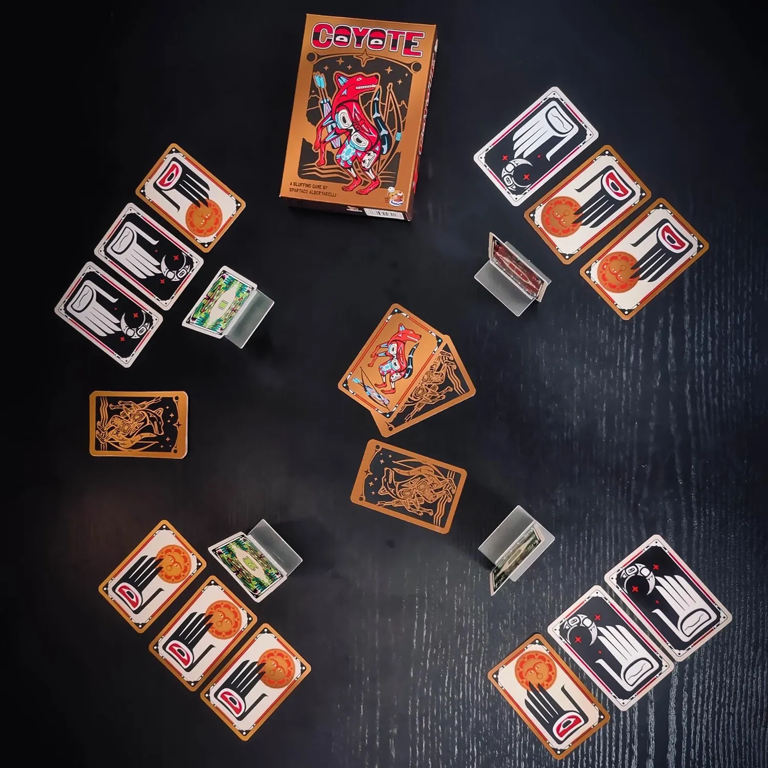 In diesem Bluff-Spiel von Spartaco Albertarelli seht ihr immer nur die Karten der anderen, aber nie eure eigene. Wer an der Reihe ist, muss eine Zahl ansagen, die unter der Gesamtsumme aller Karten im Spiel liegt, und dabei die letztgenannte Zahl erhöhen. Alte...