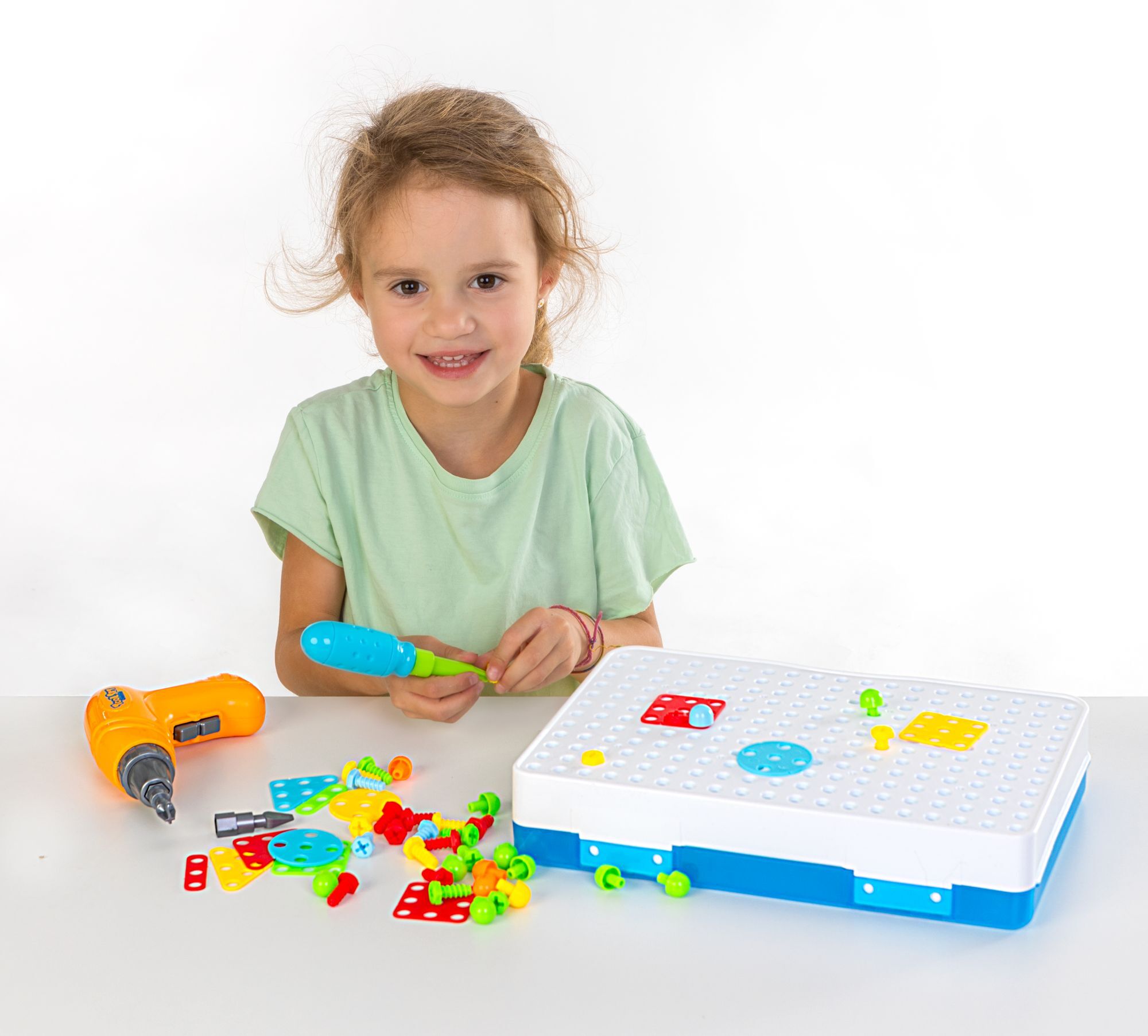 Creathek Heimwerker Baukasten, 246 Teile Creathek Heimwerker Baukasten, mit vielen verschiedenen Platten und Schrauben die miteinander verbunden werden können. Außerdem enthalten sind 1 Schraubendreher, 1 Schraubenschlüssel, 1 Akkuschrauber und 1 Aufbewahrungs...
