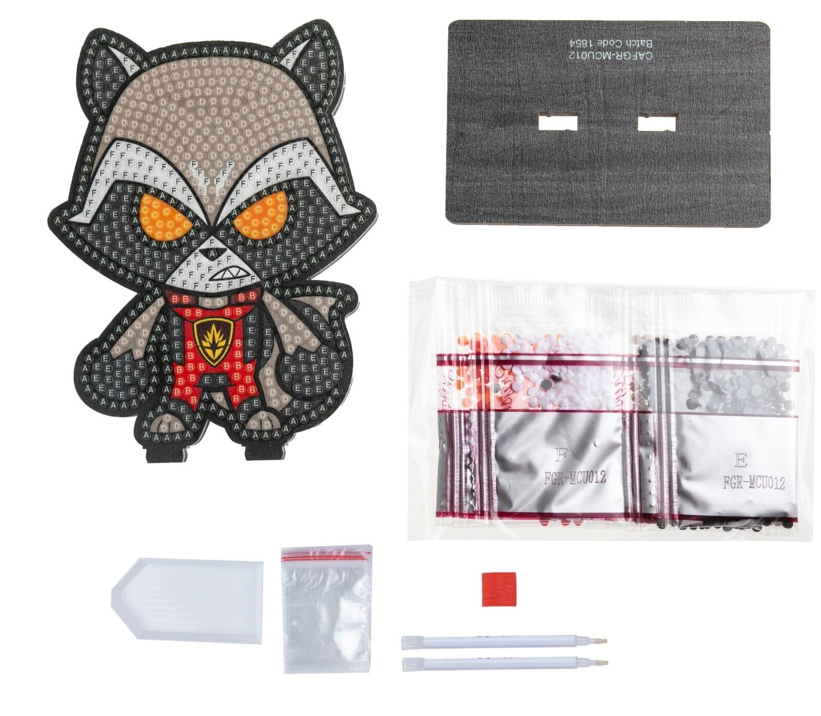 Gestalte einen funkelnden Buddy! Wir stellen Ihnen Rocket vor, einen von vielen begehrten Crystal Art Buddies aus unserer brandneuen Serie 2-Kollektion! Jedes Rocket Marvel Crystal Art Buddy-Set enthält: 1 Crystal Art Buddy aus Holz mit Klebeschablone 1 Holzst...