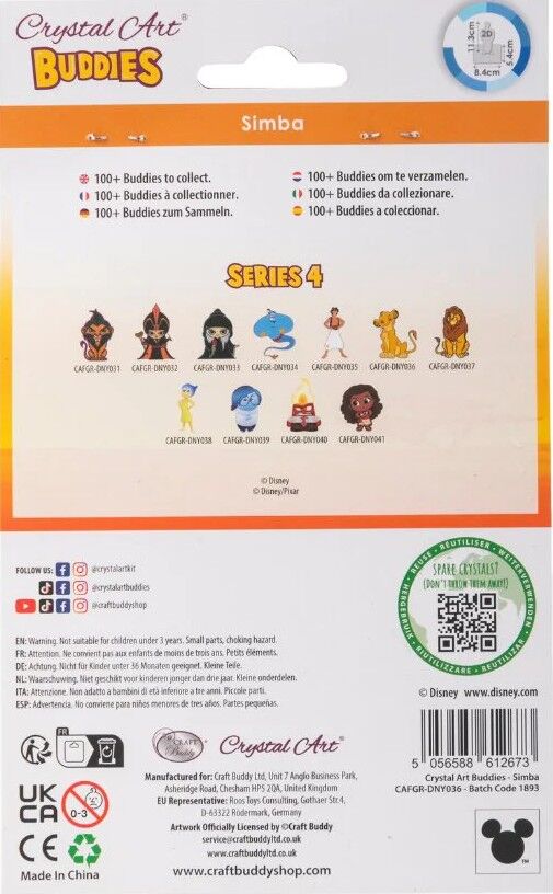 Disneys wundervolle Filmreihe Der König der Löwen bietet so viele wundervolle Charaktere doch der Star des Rudels ist Simba! Dieses kleine Junge wird einer der begehrtesten Disney Crystal Art Buddies aus der brandneuen Serie 4 sein! Ursprünglich ein verspielte...