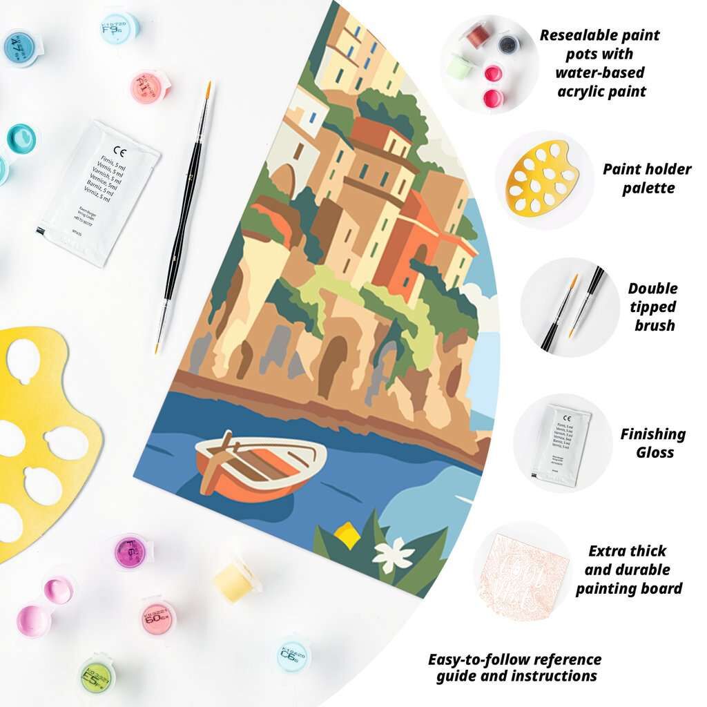 Coole Motive, leuchtende Farben und glänzender Lack für ein perfektes Finish. Das trendige Motiv Capri sorgt für großartigen Malspaß für Erwachsene ab 12 Jahren. Inhalt: 1 Maltafel (24 x 30 cm), 20 Acrylfarben auf Wasserbasis in wiederverschließbaren Näpfchen,...