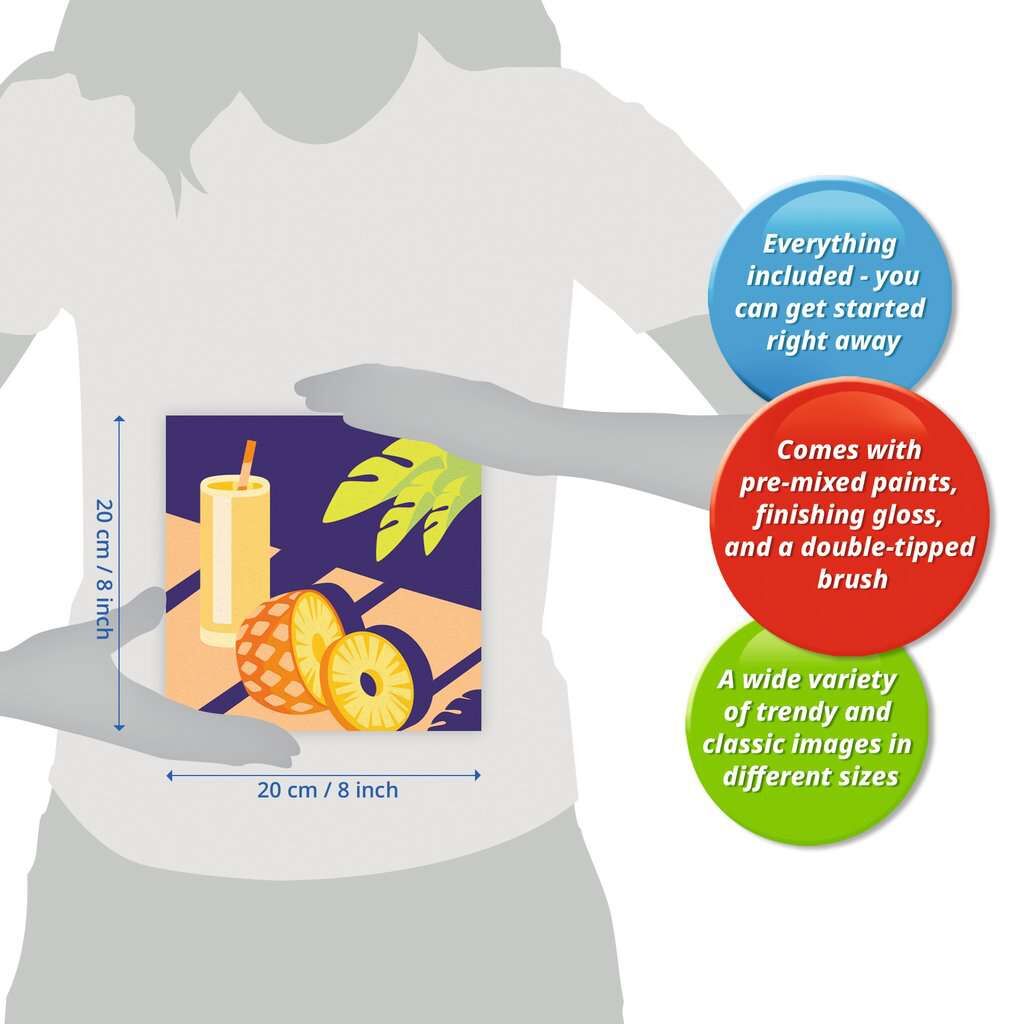 Coole Motive, leuchtende Farben und glänzender Lack für ein perfektes Finish. Das trendige Motiv Mocktail Ananas sorgt für großartigen Malspaß für Erwachsene ab 12 Jahren. Die Motivlinien sind bereits aufgedruckt und nummeriert und werden mit den fertig gemisc...