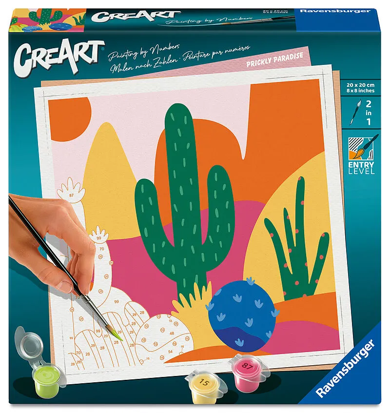 Coole Designs, leuchtende Farben und glänzender Lack für ein perfektes Finish. Das trendige Motiv Bunte Kakteen bietet großartigen Malspaß für Erwachsene ab 12. Die Motivlinien sind bereits vorgedruckt und nummeriert und müssen mit den fertig gemischten Acrylf...