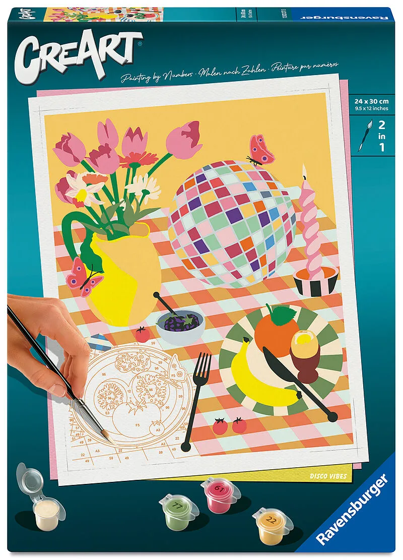 Coole Designs, leuchtende Farben und glänzender Lack für ein perfektes Finish. Das trendige Motiv Disco Vibes bietet großartigen Malspaß für Erwachsene ab 12. Die Motivlinien sind bereits vorgedruckt und nummeriert und müssen mit den fertig gemischten Acrylfar...