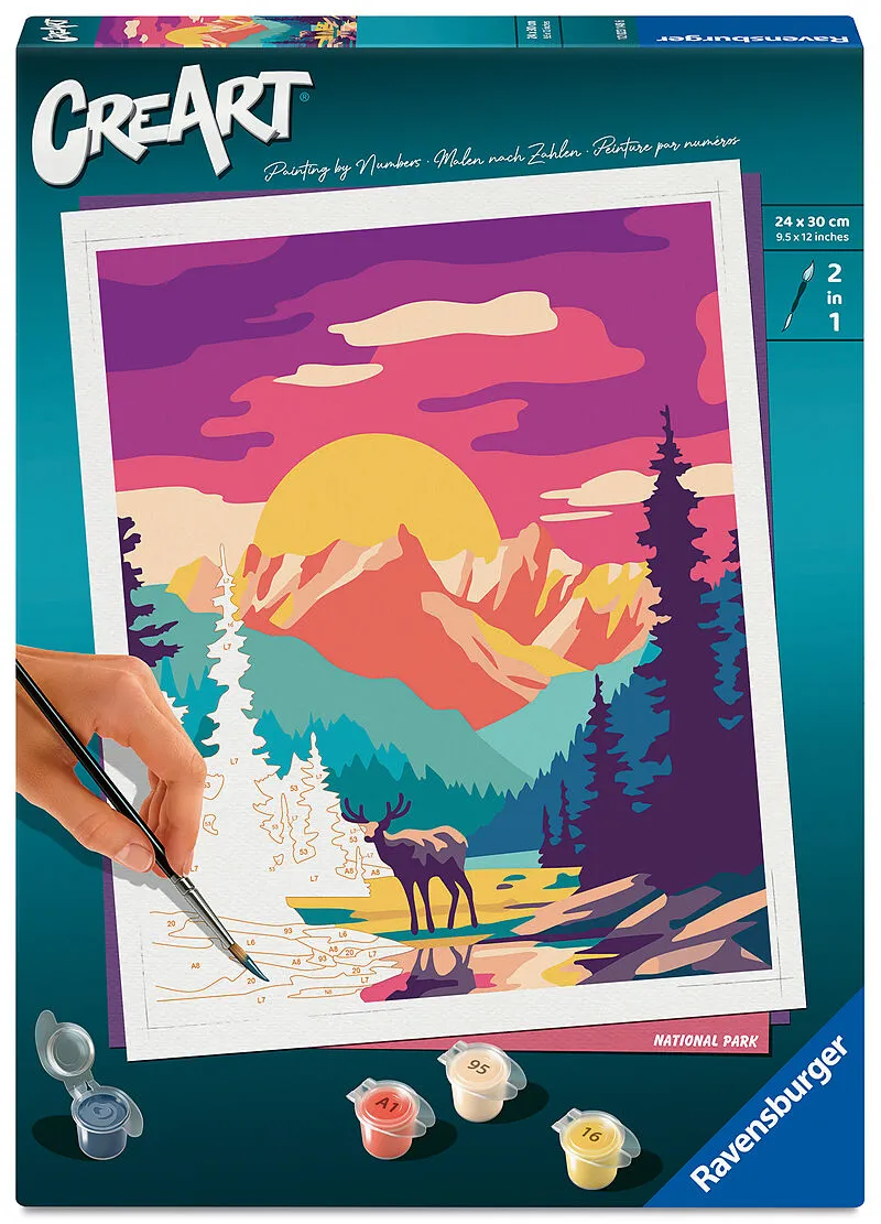 Coole Designs, leuchtende Farben und glänzender Lack für ein perfektes Finish. Das trendige Motiv National Park bietet großartigen Malspaß für Erwachsene ab 12. Die Motivlinien sind bereits vorgedruckt und nummeriert und müssen mit den fertig gemischten Acrylf...
