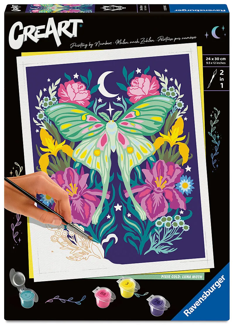 Coole Designs, leuchtende Farben und glänzender Lack für ein perfektes Finish. Das trendige Motiv Pixie Cold: Luna-Motte bietet großartigen Malspaß für Erwachsene ab 12. Die Motivlinien sind bereits vorgedruckt und nummeriert und müssen mit den fertig gemischt...