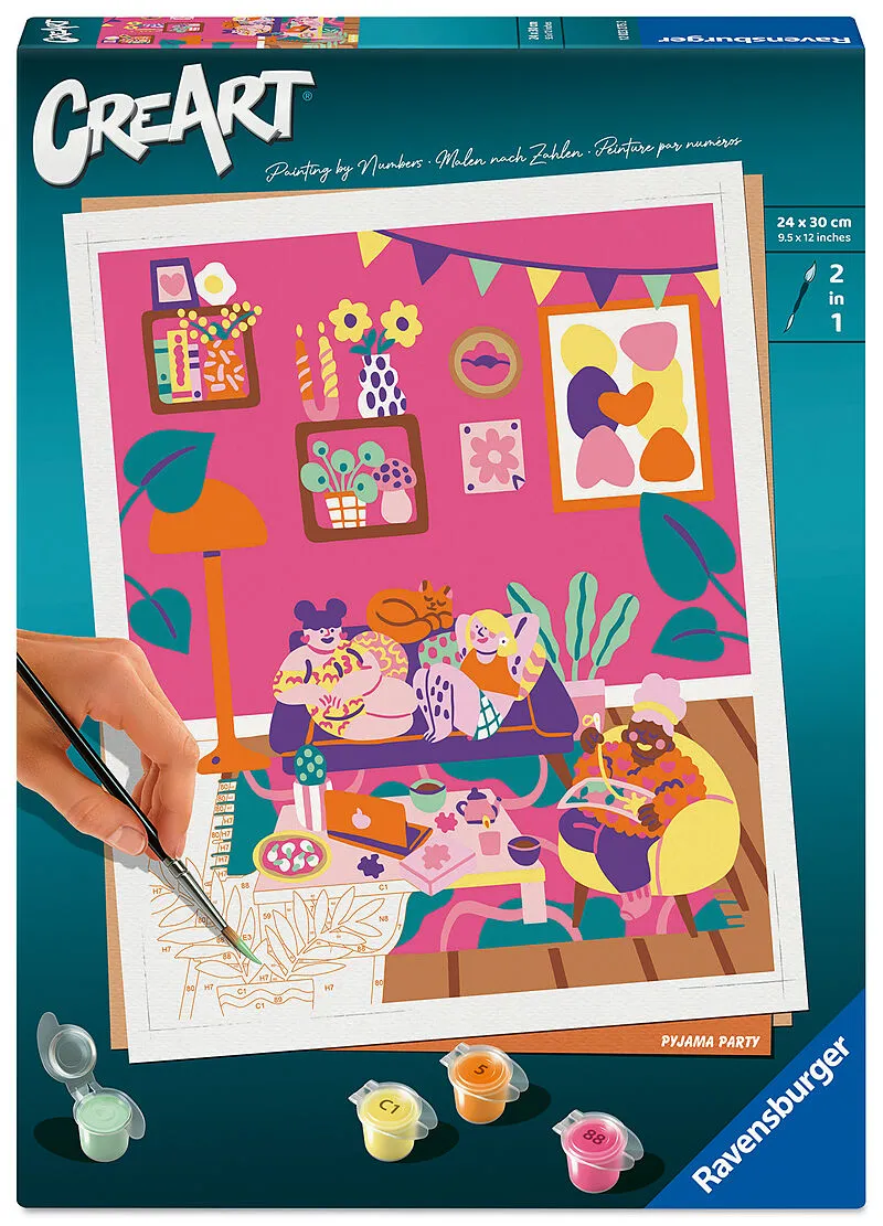 Coole Designs, leuchtende Farben und glänzender Lack für ein perfektes Finish. Das trendige Motiv Pyjama Party bietet großartigen Malspaß für Erwachsene ab 12. Die Motivlinien sind bereits vorgedruckt und nummeriert und müssen mit den fertig gemischten Acrylfa...