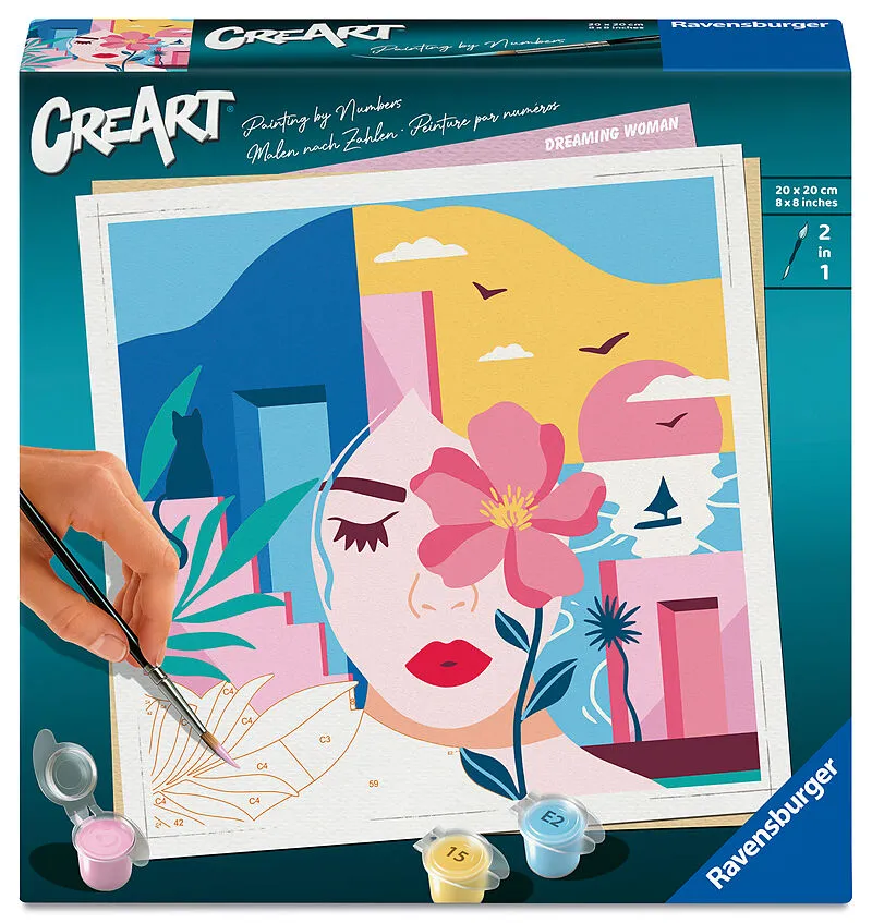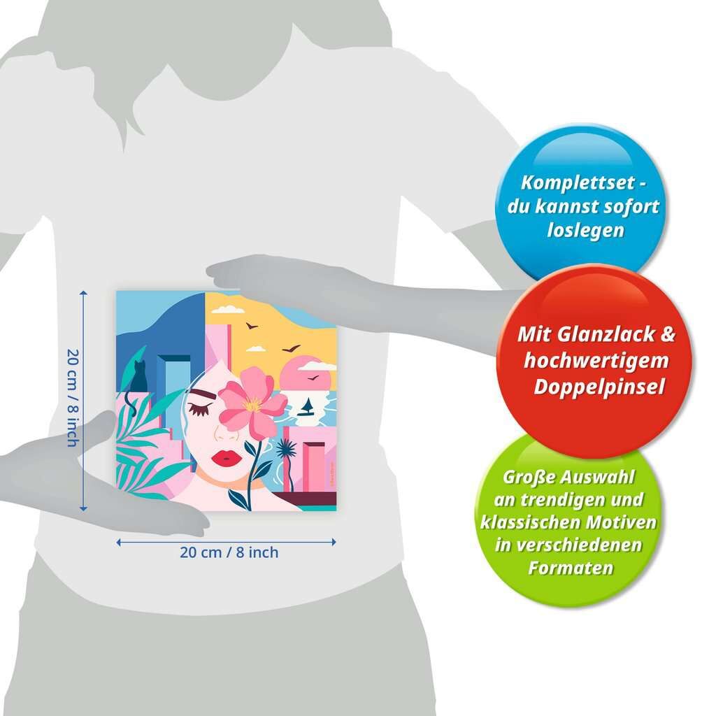 Coole Designs, leuchtende Farben und glänzender Lack für ein perfektes Finish. Das trendige Motiv Träumende Frau bietet großartigen Malspaß für Erwachsene ab 12. Die Motivlinien sind bereits vorgedruckt und nummeriert und müssen mit den fertig gemischten Acryl...