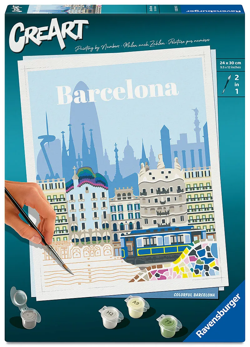 New York, Paris, Mailand und viele mehr! Entdecken Sie die schönsten Städte der Welt und holen Sie sich mit unseren Malen nach Zahlen-Sets ihren Zauber direkt zu sich nach Hause! Das trendige Motiv Farbenfrohes Barcelona bietet großartigen Malspaß für Erwachse...