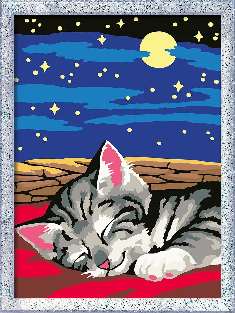 Farbige Motivlinien: Größerer Malspaß & ein schöneres Ergebnis! Dank der farbigen Motivlinien, können die Kinder das ganze Motiv Katzenträume und die Farben schneller erkennen. Der Pinsel hat eine gute Führung und so entsteht ein perfektes Bild. Die schöne...