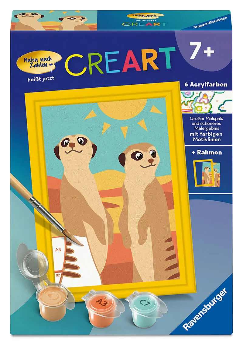 Farbige Motivlinien: Größerer Malspaß & ein schöneres Ergebnis!Dank der farbigen Motivlinien, können die Kinder das ganze Motiv Neugierige Erdmännchen und die Farben schneller erkennen. Der Pinsel hat eine gute Führung und so entsteht ein perfektes Bild.Di...