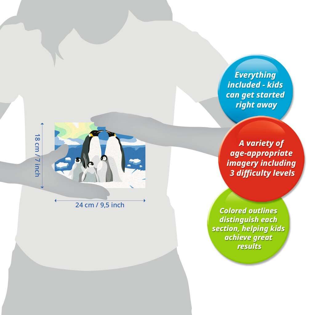 Farbige Motivlinien: Größerer Malspaß & ein schöneres Ergebnis! Dank der farbigen Motivlinien, können die Kinder das ganze Motiv Pinguin-Familie und die Farben schneller erkennen. Der Pinsel hat eine gute Führung und so entsteht ein perfektes Bild. Die schönen...
