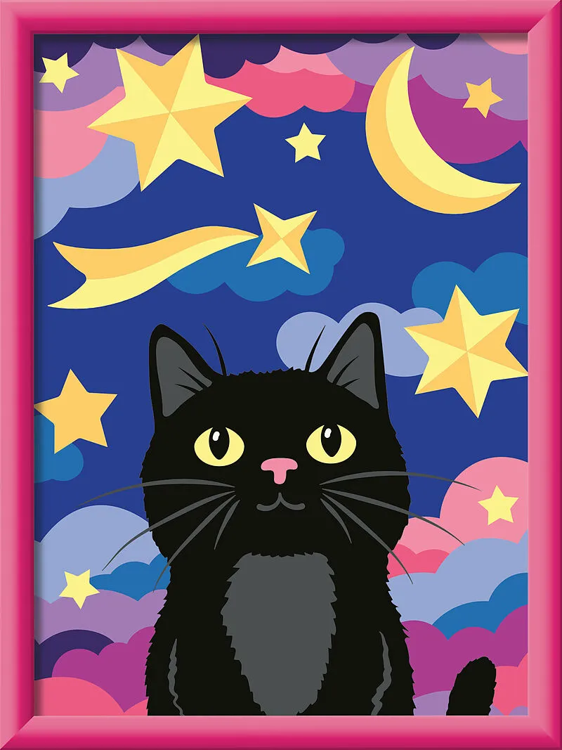 Sternenkatze Malen nach Zahlen für Kinder und Gipsabgüsse! Dank der farbigen Motivlinien können Kinder ganz einfach das gesamte Motiv ausmalen. Die passenden, selbst gegossenen 2D-Gips-Elemente können ebenfalls bemalt und auf das Motiv geklebt werden. Das 2-IN...