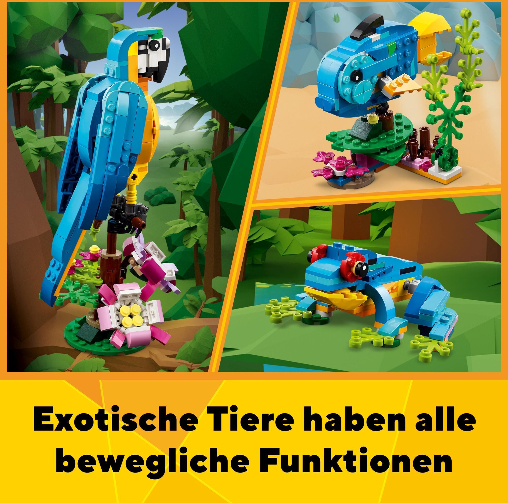 LEGO® Creator 31136 Exotischer Papagei LEGO Creator Exotischer Papagei (31136) ist ein faszinierendes 3-in-1-Spielset, das junge Baumeisterinnen und Baumeister sowie leidenschaftliche Tierfreunde ab 7 Jahren auf spannende Abenteuer im Regenwald schickt. Das Se...