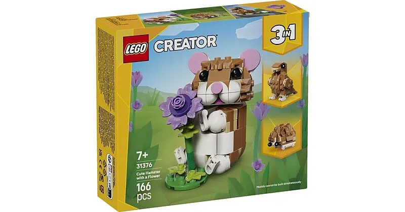 LEGO® Creator 31376 Niedlicher Hamster mit Blume Das LEGO Creator 3-in-1-Set Niedlicher Hamster mit Blume (31376) ist ein schönes Bauspielzeug, das tierbegeisterte Kinder ab 7 Jahren begeistert. Dieses Konstruktionsspielzeug bietet Mädchen und Jungen jede Meng...