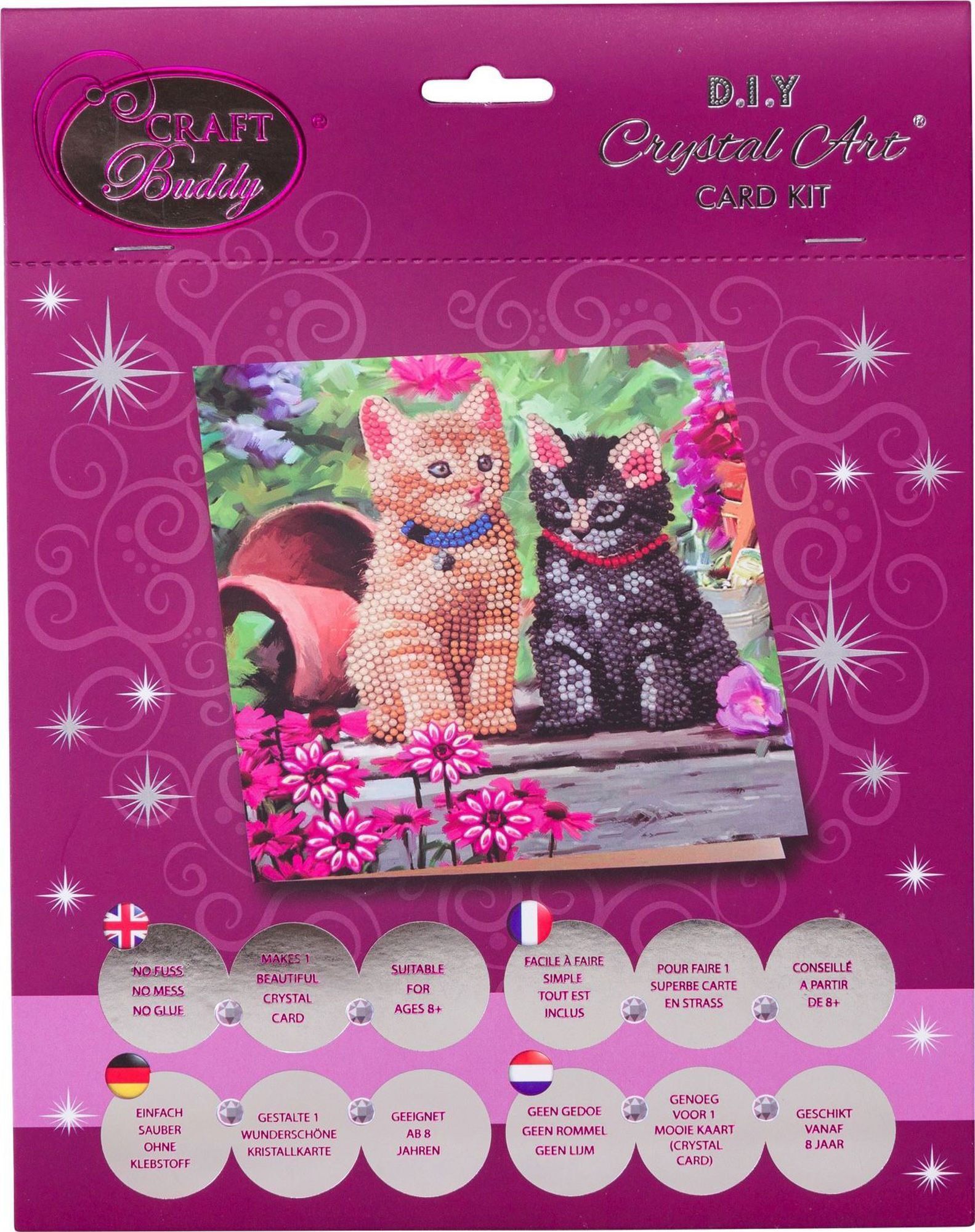 Crystal Art Katzenfreunde 18x18cm Gestalte Deine eigene, wunderschön funkelnde Grußkarte nach einem vorgegebenen Design. Alle Kreativsets enthalten: 1 Grußkarte mit klebender Vorlage, Briefumschlag, vorsortierte Beutel mit farbigen Kristallen, Stift zum Aufneh...