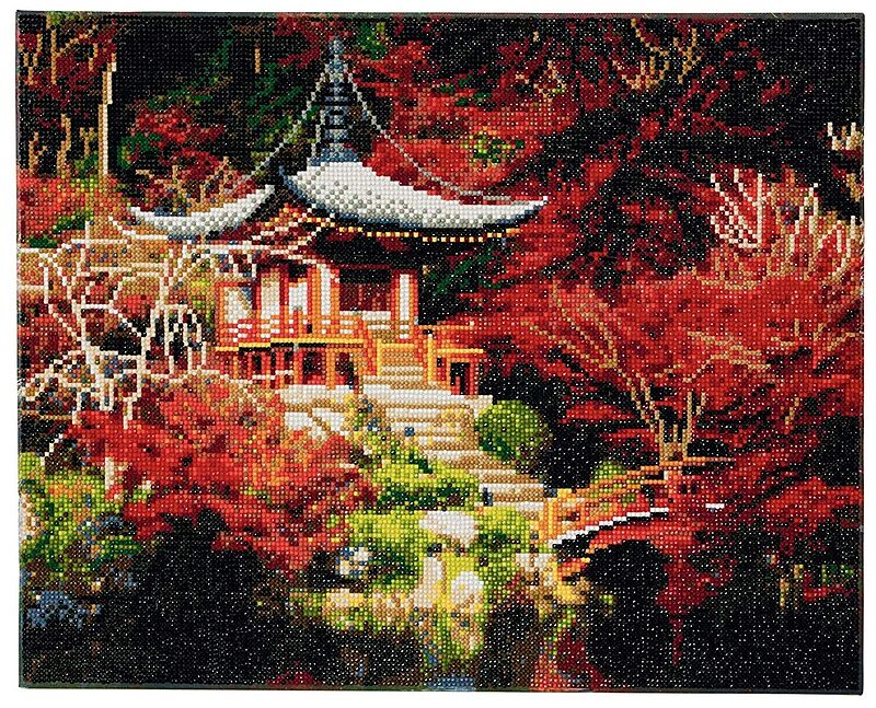 Crystal Art Leinwand Japanischer Tempel 40x50 cm Gestalte ein wunderschön funkelndes Kristallbild nach einem vorgegebenen Design auf holzgerahmter Leinwand 40 x 50cm. Alle Kreativsets enthalten: 1 auf Holz gerahmte Leinwand mit klebender Bildvorlage, vorsortie...
