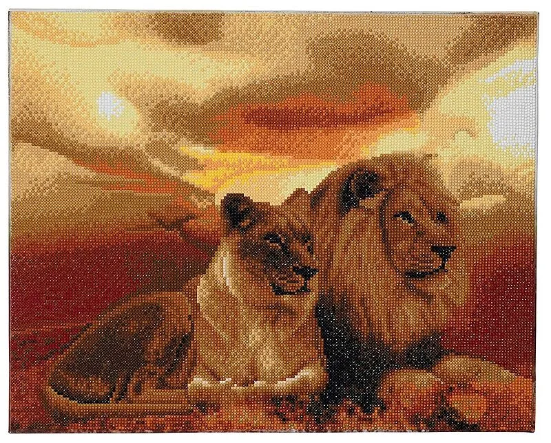 Crystal Art Löwe 30x30 cm Gestalte ein wunderschön funkelndes Kristallbild nach einem vorgegebenen Design auf holzgerahmter Leinwand 40 x 50cm. Alle Kreativsets enthalten: 1 auf Holz gerahmte Leinwand mit selbstklebender Bildvorlage, vorsortierte Beutel mit fa...