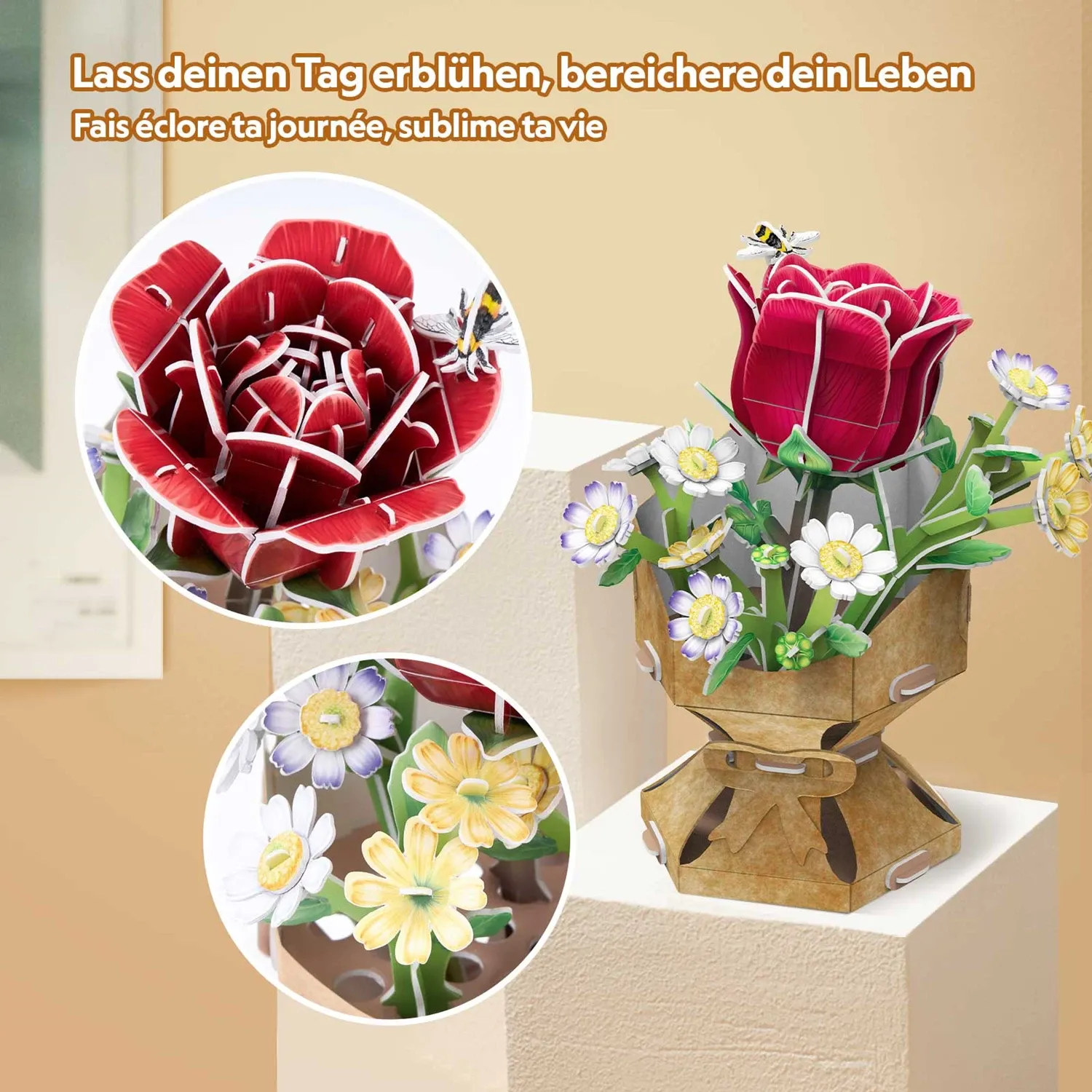 Mit diesem 3D Puzzle von CubicFun kann ohne Leim und Schere der Blumentopf Rose als Modell gebaut werden. Die bebilderte Anleitung führt Schritt für Schritt zum fertigen 3D Puzzle. Die hochwertigen Teile lassen auch mehrfaches Aufbauen zu. Perfekt für Blumenfa...