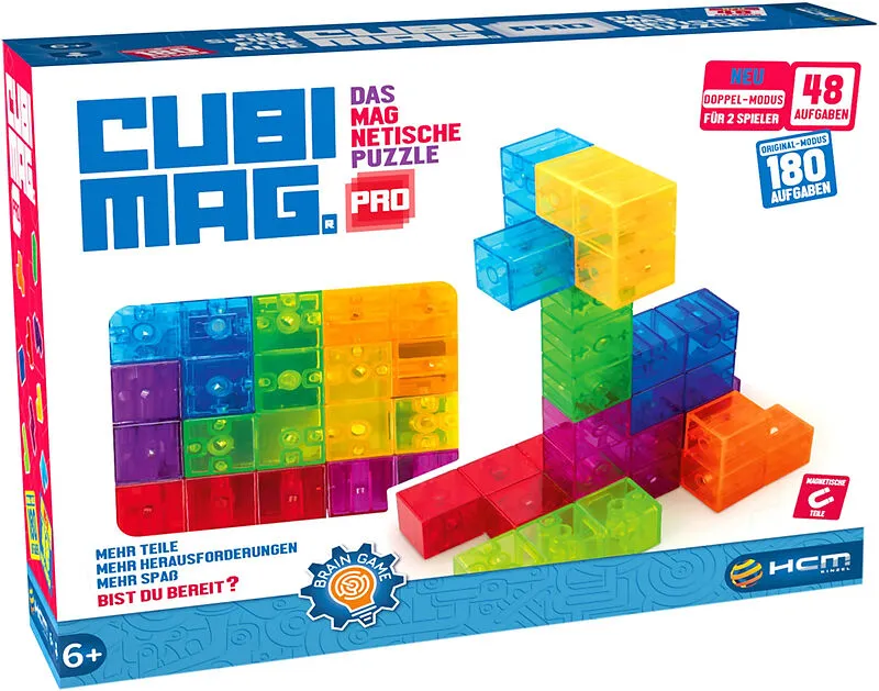 Die bunten Puzzleteile in unterschiedlichen Formen und Farben halten dank der integrierten Magnete zusammen. Löse die über 180 Aufgaben in 3 unterschiedlichen Schwierigkeitsgraden im klassischen Modus, oder fordere einen Gegner heraus.