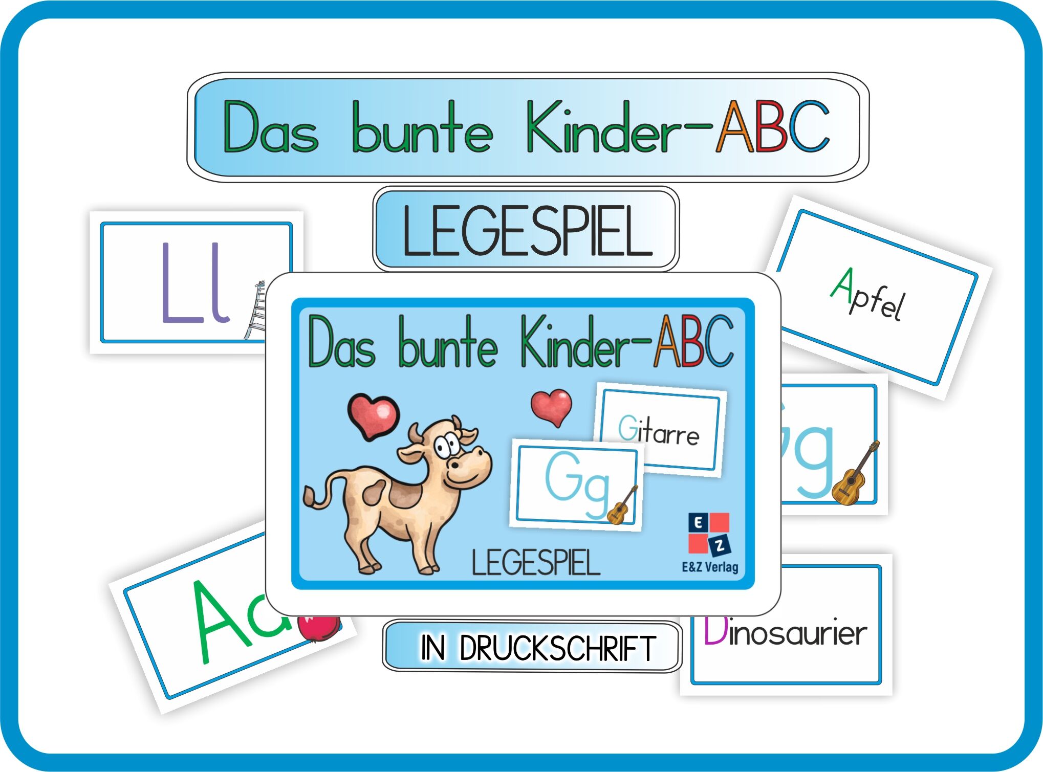 Das bunte Kinder-ABC Legespiel (mit DINA4-Poster)Bei diesem Spiel lernen die Kinder das ABC mit Groß-und Kleinbuchstaben kennen. Eine Übersicht bietet das DINA4-Poster.Inhalt: 52 Spielkarten (26 ABC-Karten mit einem Groß- und Kleinbuchstaben und einem Gegensta...