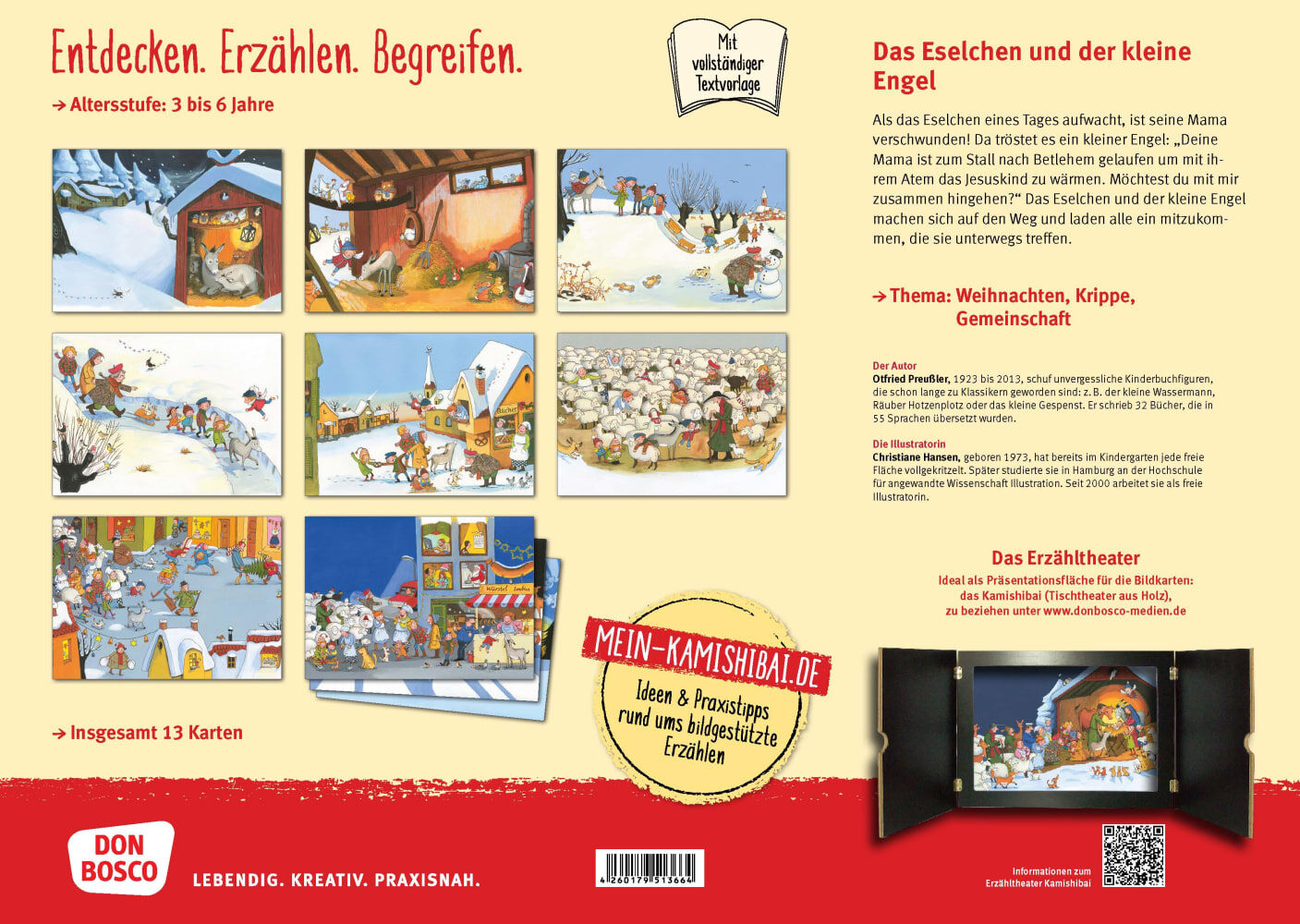 Ein Bilderbuch-Klassiker für das Erzähltheater: Die Weihnachtsbotschaft aus Esel-Sicht, Kamishibai-Bildkarten und Textvorlage für Kita und Grundschule. Auf dem Weg zu Jesus' Geburt: Eine Weihnachtsgeschichte für das Kamishibai Das kleine Eselchen wacht oh...