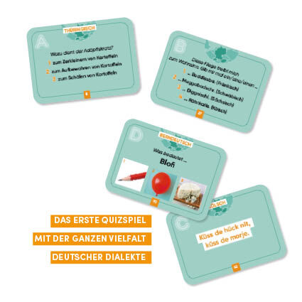 Die deutsche Sprache jenseits des Dudens Von Flensburg bis Bern, von Köln bis Wien - sprechen wir wirklich eine gemeinsame Sprache? In diesem Quizspiel kannst du zeigen, dass du den richtigen Riecher für ungewohnte Dialektausdrücke aller Art hast. Vier Quizka...