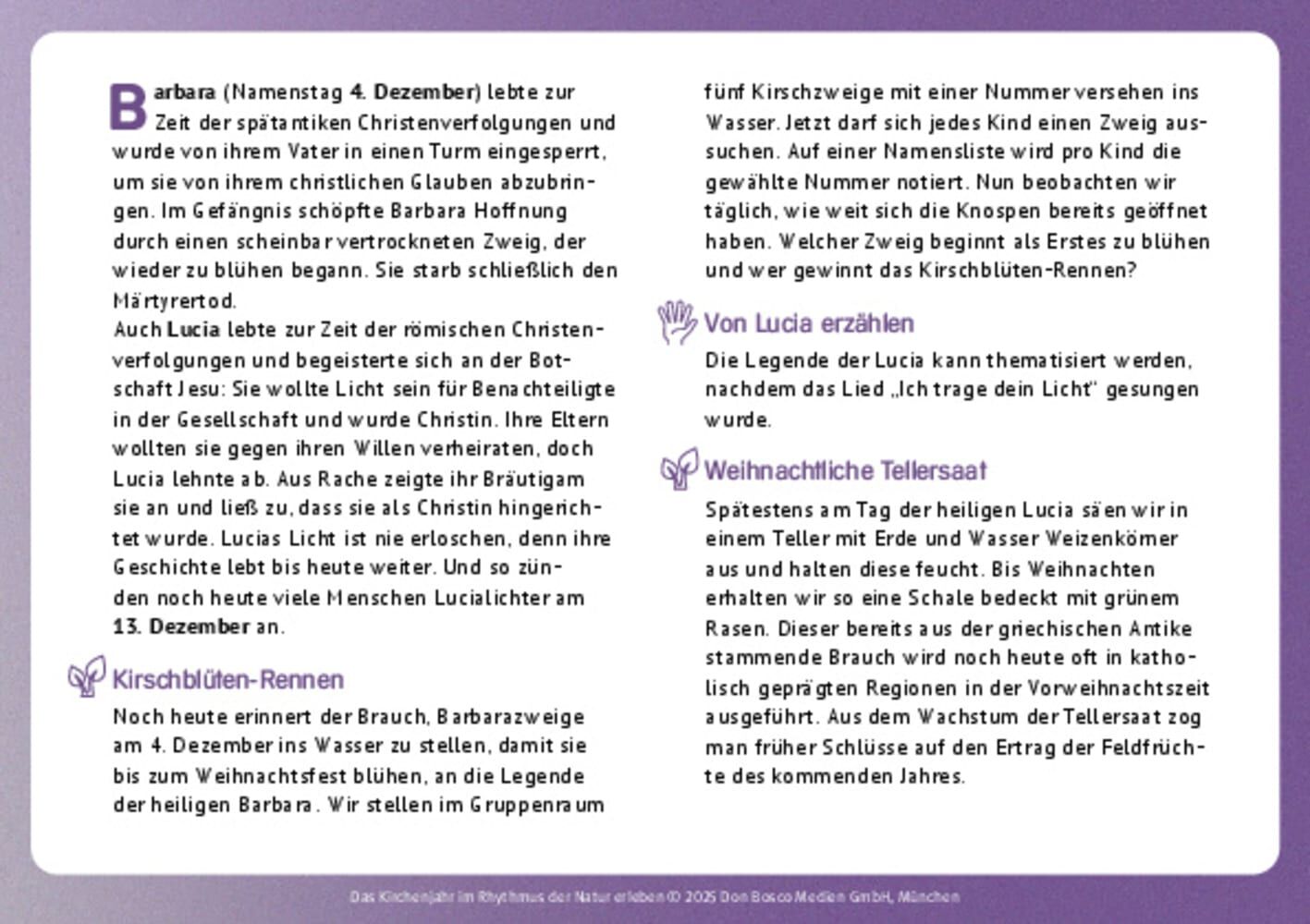 Neue Impulse auf 30 Bildkarten: Religionspädagogik in der Natur. Christliche Rituale und Jahreskreisfeste mit Kita-Kindern entdecken und kennenlernen. Jahreszeiten und Feste: kreative Impulse. Bildkarten zur Religionspädagogik in der Natur Ob Maria Lichtmess, ...