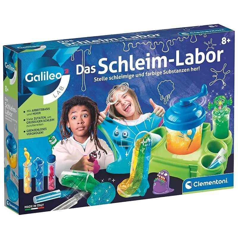Clementoni Das Schleim-Labor Um die überraschenden Seiten der Chemie entdecken zu können, wurde dieses umfangreiche Wissenschaftslabor entwickelt, mit dem man echte dickflüssige Substanzen herstellen kann. Indem man den Mixer nutzt, der an der praktischen Arbe...