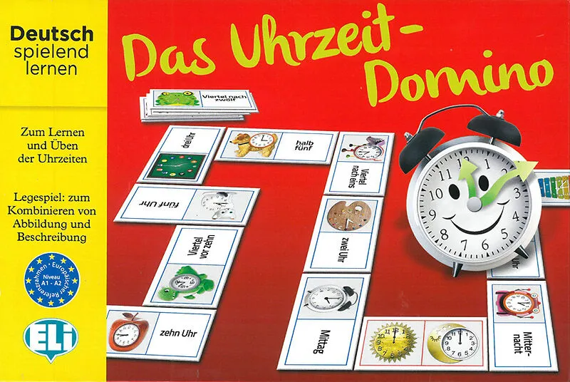 Jeder Dominostein hat auf der einen Hälfte das Bild einer Uhr, die die Zeit zeigt, und auf der anderen Hälfte eine Uhrzeitangabe in schriftlicher Form. Die Spieler müssen die Zeiten auf den Dominosteinen anpassen. Es gibt zwei Spielmöglichkeiten: Die Spieler ...