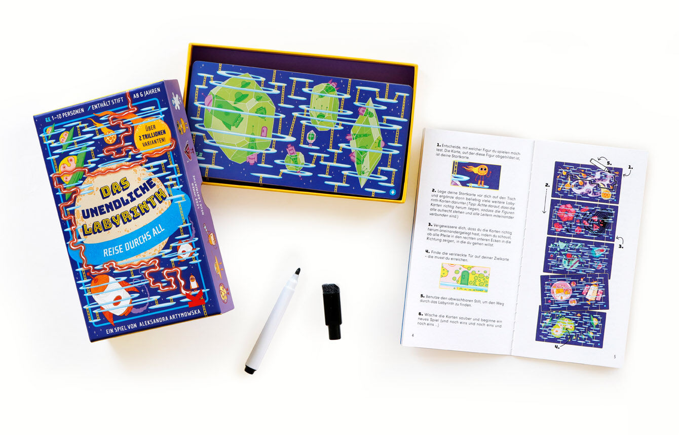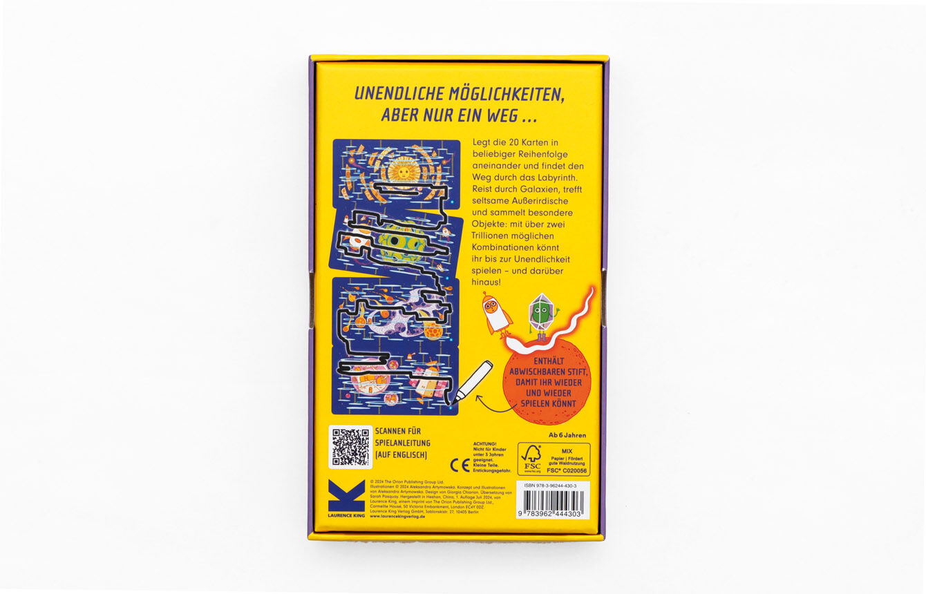 -Nachfolgetitel unseres Kinderspiels 'Das unendliche Labyrinth'-Mehr als 2 Trillionen mögliche Varianten, aber immer nur ein Weg, der zum Ziel führt!-Mit einem abwischbaren Stift für unendlichen Spaß-Enthält ein Booklet mit Spielanleitung und kleinen...