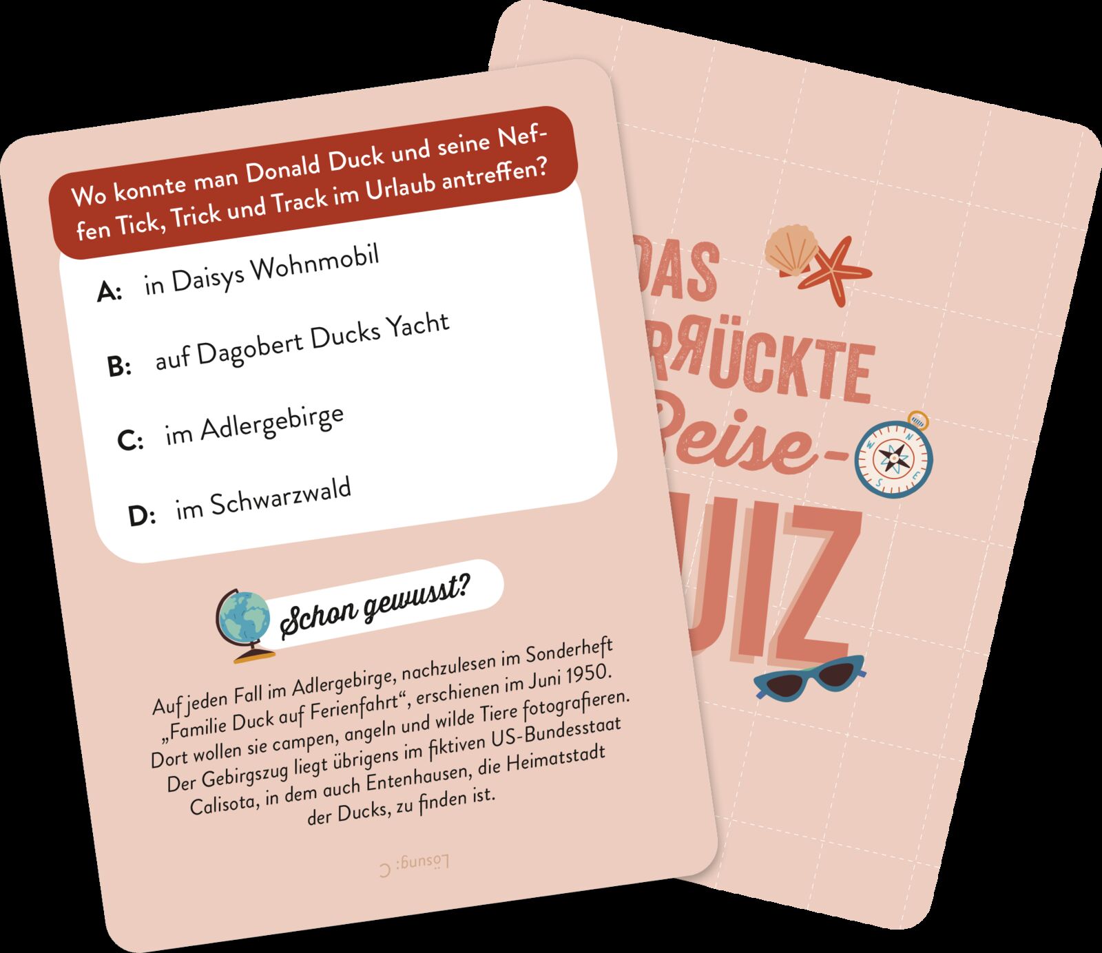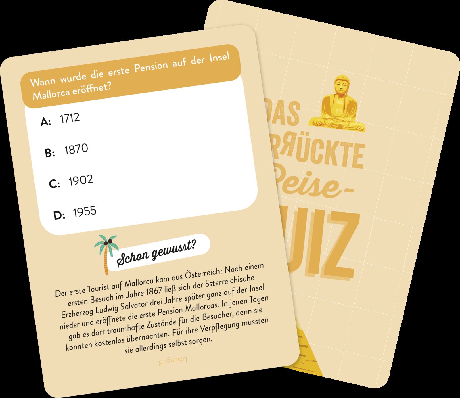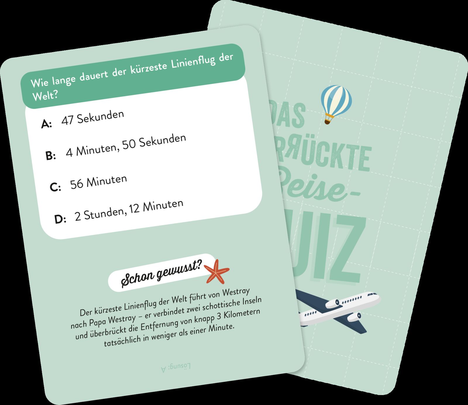 Das Ratespiel voll kurioser Fakten aus der Reise-Welt Wann wurde die erste Pension auf Mallorca eröffnet? Wo machen Donald Duck und seine Neffen Ferien? Und wie lange dauert der kürzeste Linienflug der Welt? Mit diesem Rate-Quiz testest du dein Wissen über sk...