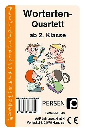 Im Handumdrehen die Wortarten üben! Dieses Quartett behandelt die Wortarten Adjektiv, Nomen, Pronomen und Verb sowie die bestimmten und unbestimmten Artikel. Zusätzlich bietet das Spiel sechs Karten mit Erklärungen zu den Funktionen der Wortarten. Durch das Qu...