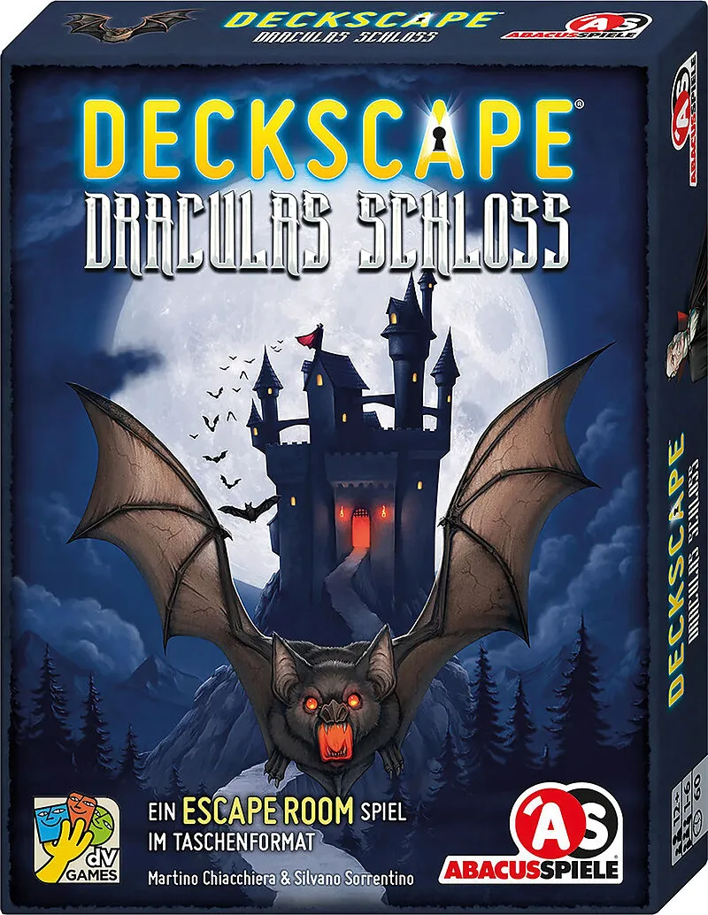Deckscape Draculas Schloss ist ein Escape Room Spiel im Taschenformat. Es kann mit einer Gruppe von Freunden oder auch allein gespielt werden. Mitten in der Nacht findet ihr auf eurem Dachboden ein lang verschollenes, unheimliches Buch. Als ihr es berührt, kli...