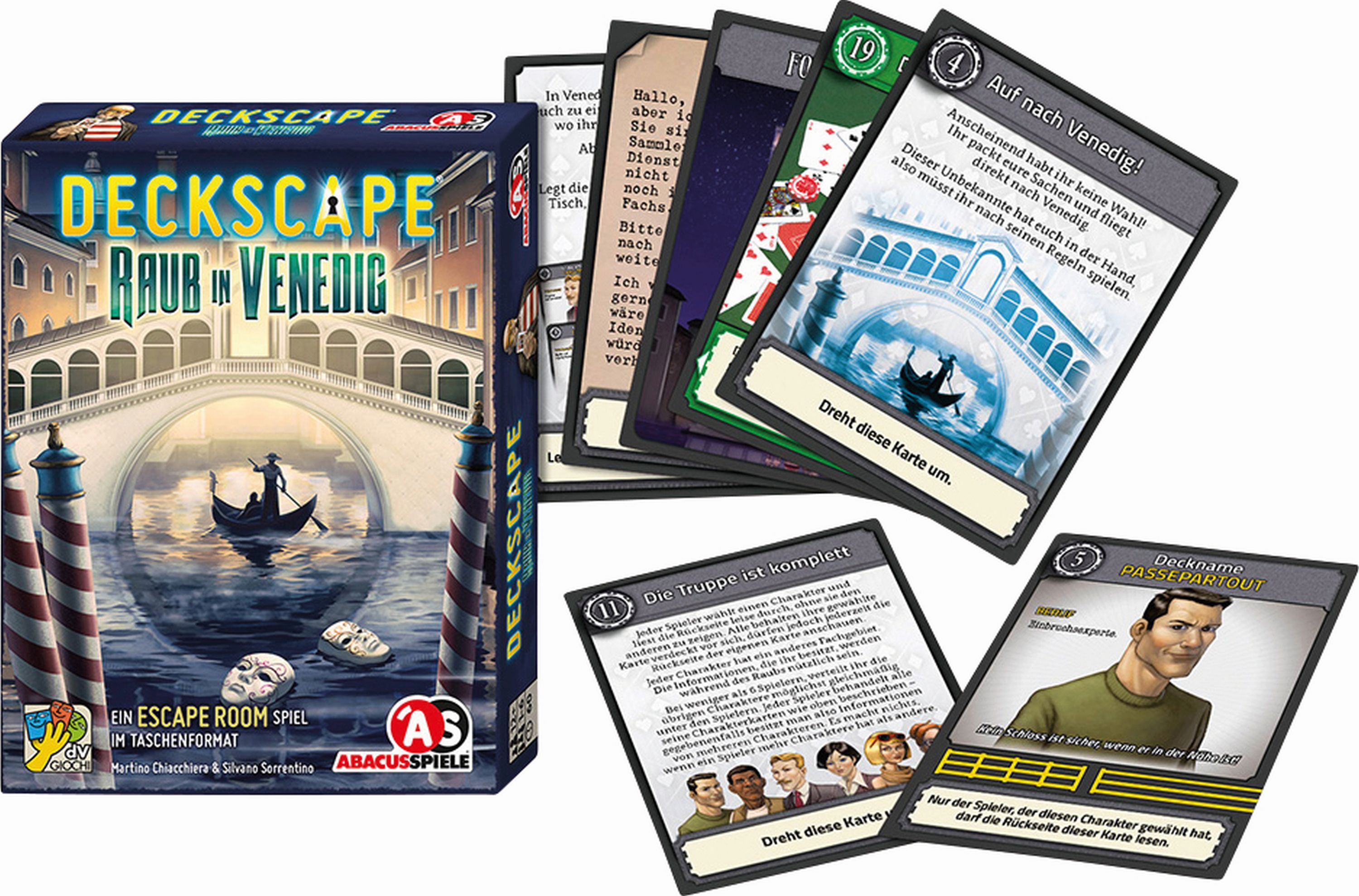 Deckscape - Raub in Venedig Deckscape - Raub in Venedig Ihr seid Meisterdiebe, die sich schon lange zur Ruhe gesetzt haben. Doch ein mysteriöser Auftraggeber zwingt euch, die alte Truppe ein letztes Mal zu vereinen. Eure Mission: Brecht in Venedig in das ältes...