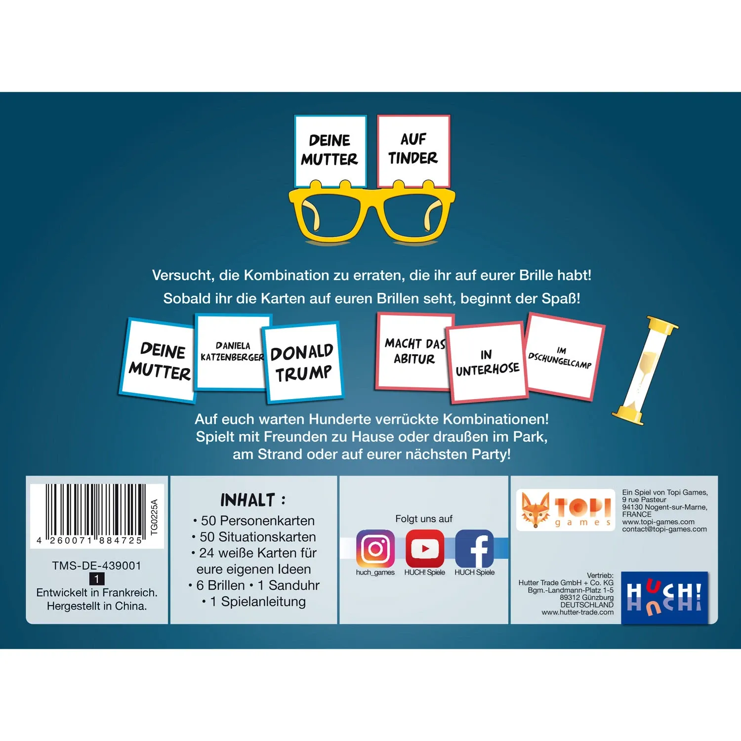 Kannst du erraten, wen du auf deiner Brille hast? Ist es Taylor Swift in einem Kloster, Donald Trump beim Oktoberfest oder doch einfach nur deine Mutter in Unterhose? Du darfst nur Ja/Nein- Fragen an die anderen stellen und musst so auf die richtige Lösung kom...