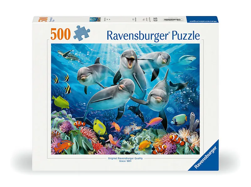 Wenn Delfine sprechen könnten, was würde dieses fröhliche Quintett sagen Vielleicht: #Komm rein, das Wasser ist toll!# Neben dieser freundlichen Gruppe siehst du eine Meeresschildkröte, Moorish Idol-Fische, Clownfische und vieles mehr. Wusstest du, dass es 43 ...