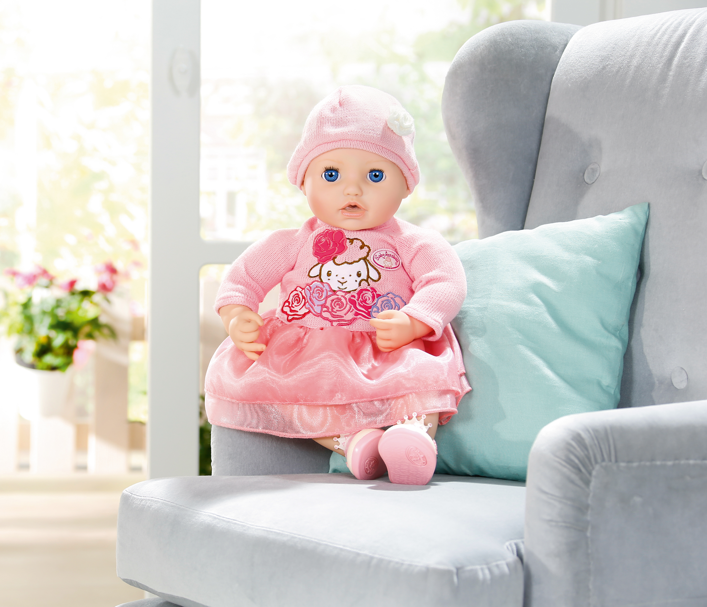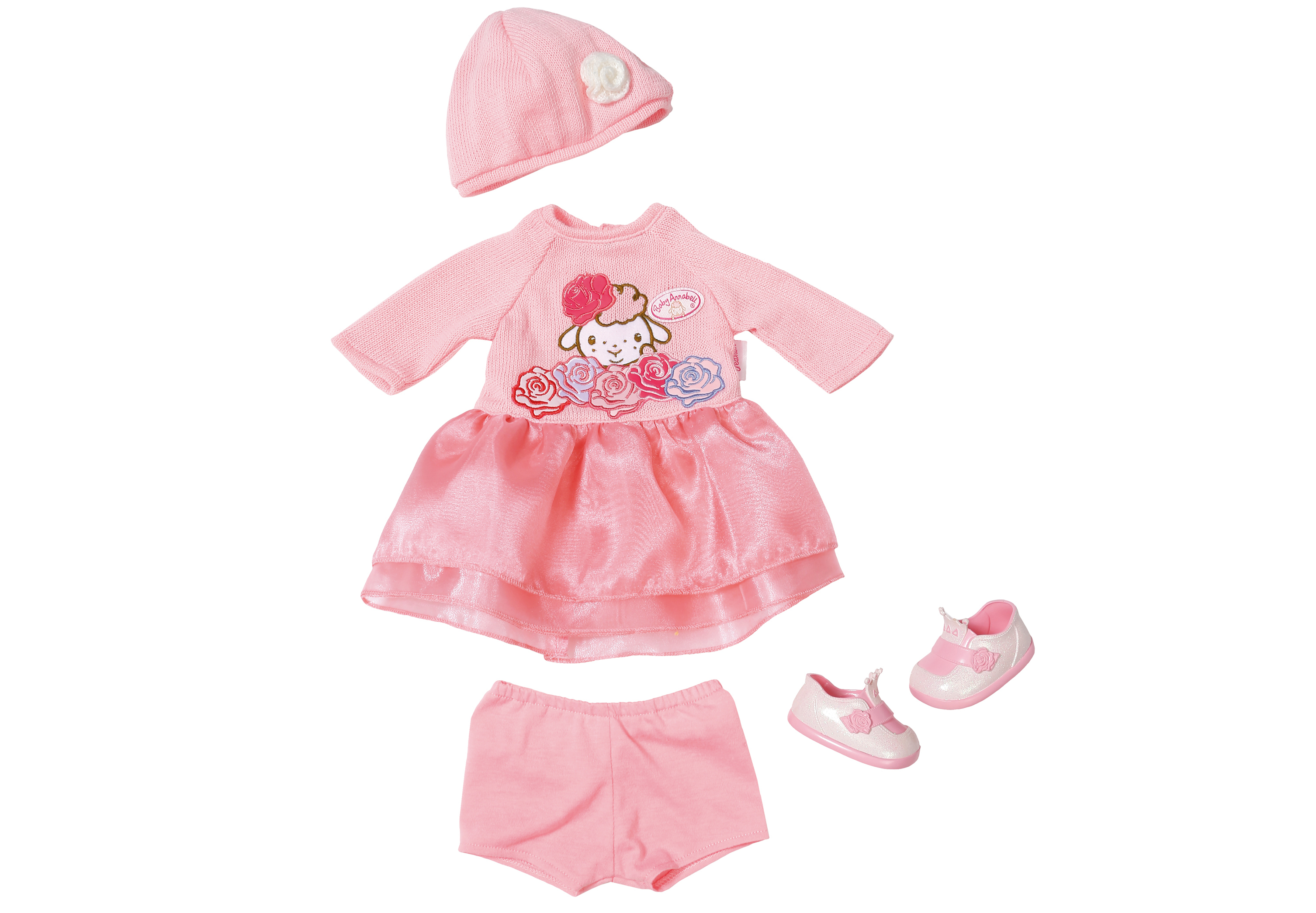 Das Deluxe Strick Set für Baby Annabell besteht aus schickem Strick mit wallendem Organza-Rock, Höschen für unten drunter, Mütze und Schuhe mit Krönchen was will man mehr. Original Kleidung für die Baby Annabell Markenspielpuppe 43 cm.