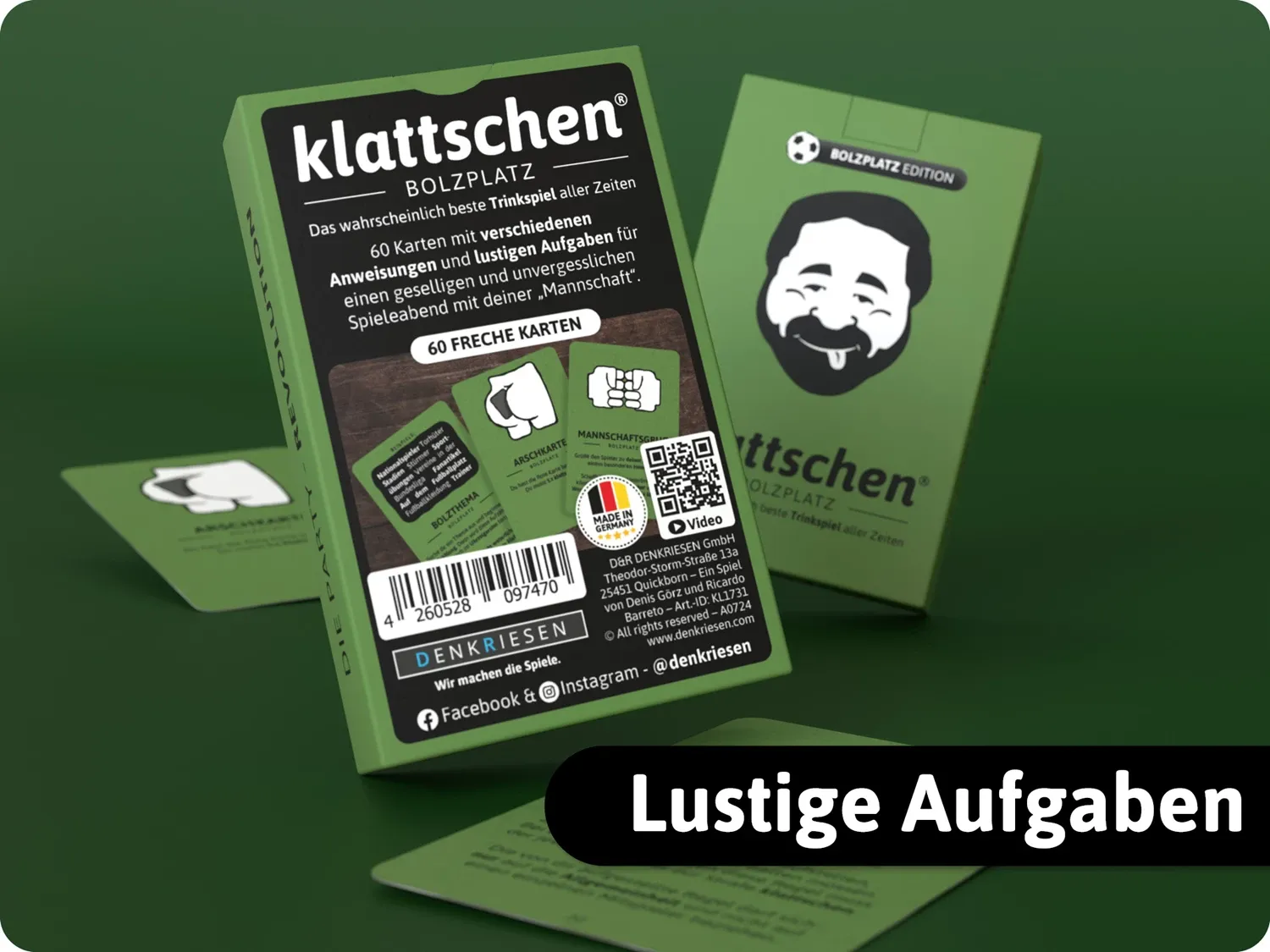 klattschen® - BOLZPLATZ EDITION ''Das wahrscheinlich beste Trinkspiel aller Zeiten'' Das wahrscheinlich beste Trinkspiel aller Zeiten. 60 Karten mit verschiedenen Anweisungen und lustigen Aufgaben für einen geselligen und unvergesslichen Spieleabend mit deiner...