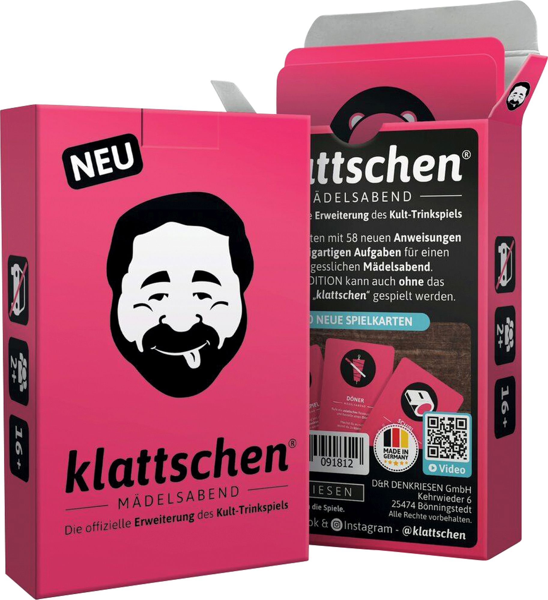 klattschen - Mädelsabend ENTDECKE DIE REVOLUTION IN SACHEN PARTYSPIELE - KLATTSCHEN - Mädelsabend - DIE OFFIZIELLE ERWEITERUNG DES KULT-TRINKSPIELS Über das Spiel: Langweilige Party in Sicht? Nicht mit diesem Spiel! Mit der offiziellen Erweiterung des Kult-Tri...