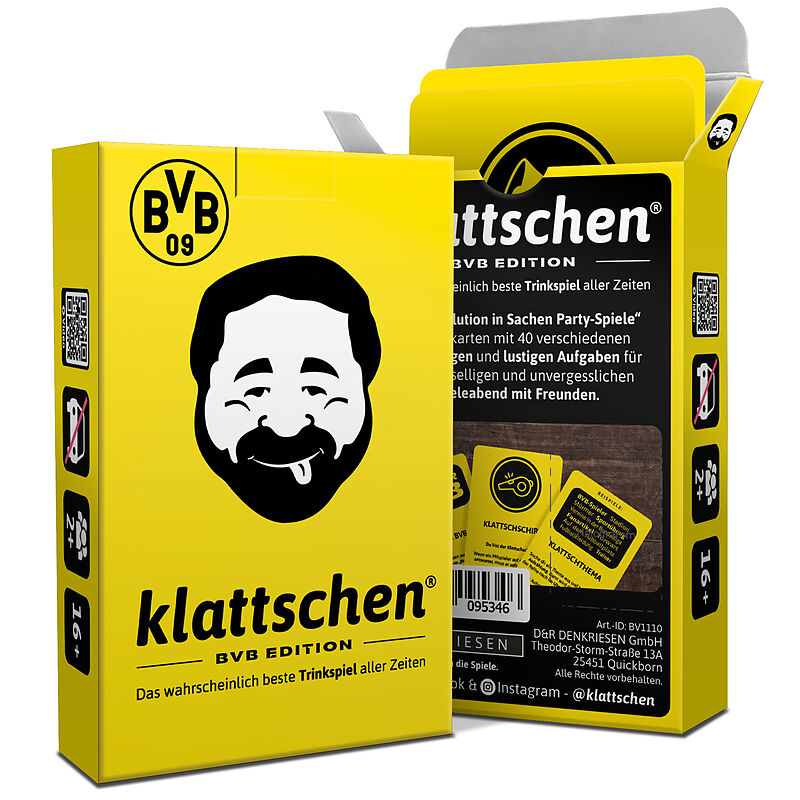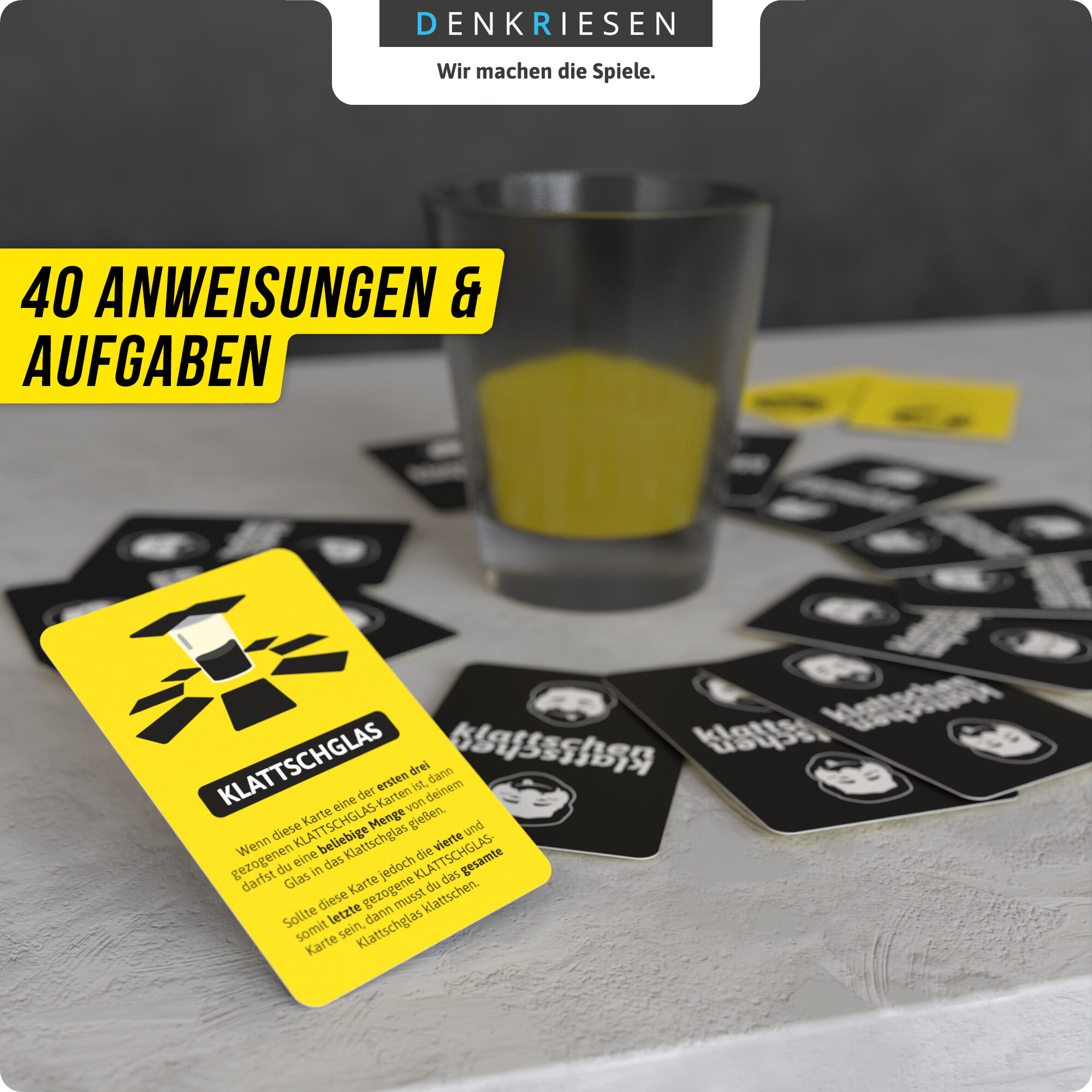 Langweilige Party in Sicht? Nicht mit diesem Spiel! Mit dem Kult-Trinkspiel klattschen der Marke DENKRIESEN hast du das perfekte Spiel um einen feucht-fröhlichen Abend mit deinen Freunden zu erleben. klattschen ist das meistverkaufte Karten-Trinkspiel Deutschl...