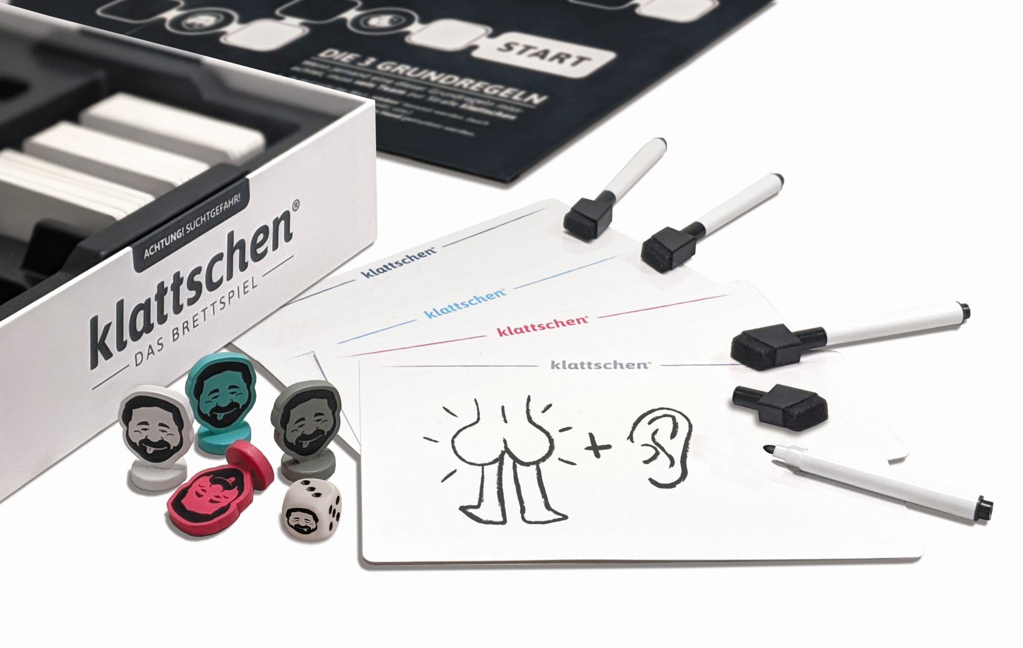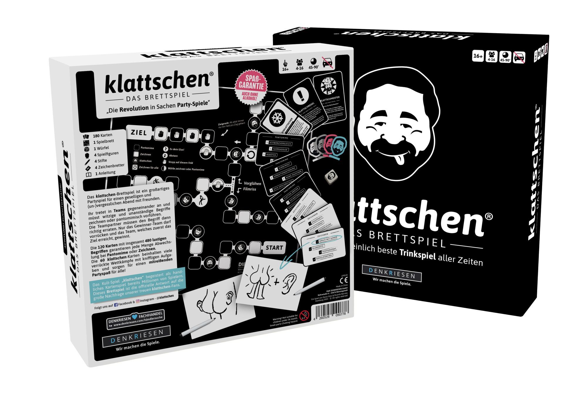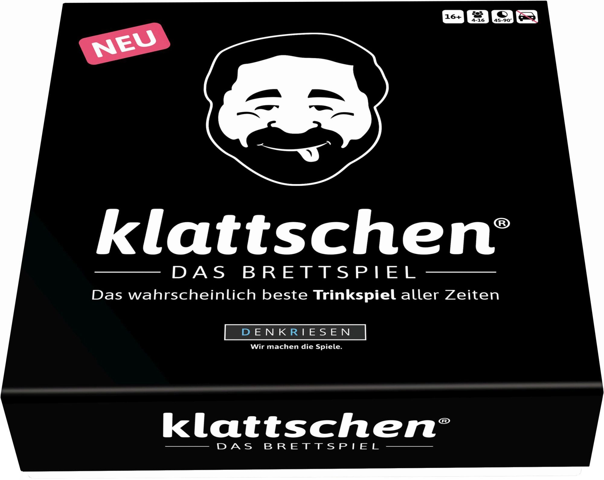 DENKRIESEN - klattschen® - Trinkspiel - DAS BRETTSPIEL - Das wahrscheinlich beste Trinkspiel aller Zeiten Das klattschen-Brettspiel ist ein großartiges Partyspiel für einen geselligen und (un-)vergesslichen Abend mit Freunden.Ihr tretet in Teams gegeneinander ...