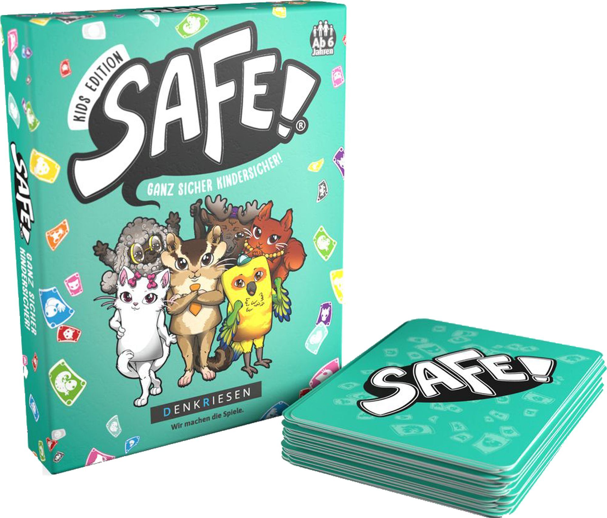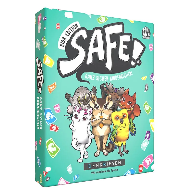 Safe! Kids Edition - Ganz sicher kindersicher! Bei diesem Kartenspiel ist nicht das kleinste oder größte Tier entscheidend - nur zusammen sind sie stark! Luchse deinen Mitspielern möglichst viele Tierfamilien ab und sichere sie Dir mit einem ''SAFE!. Pass jedo...