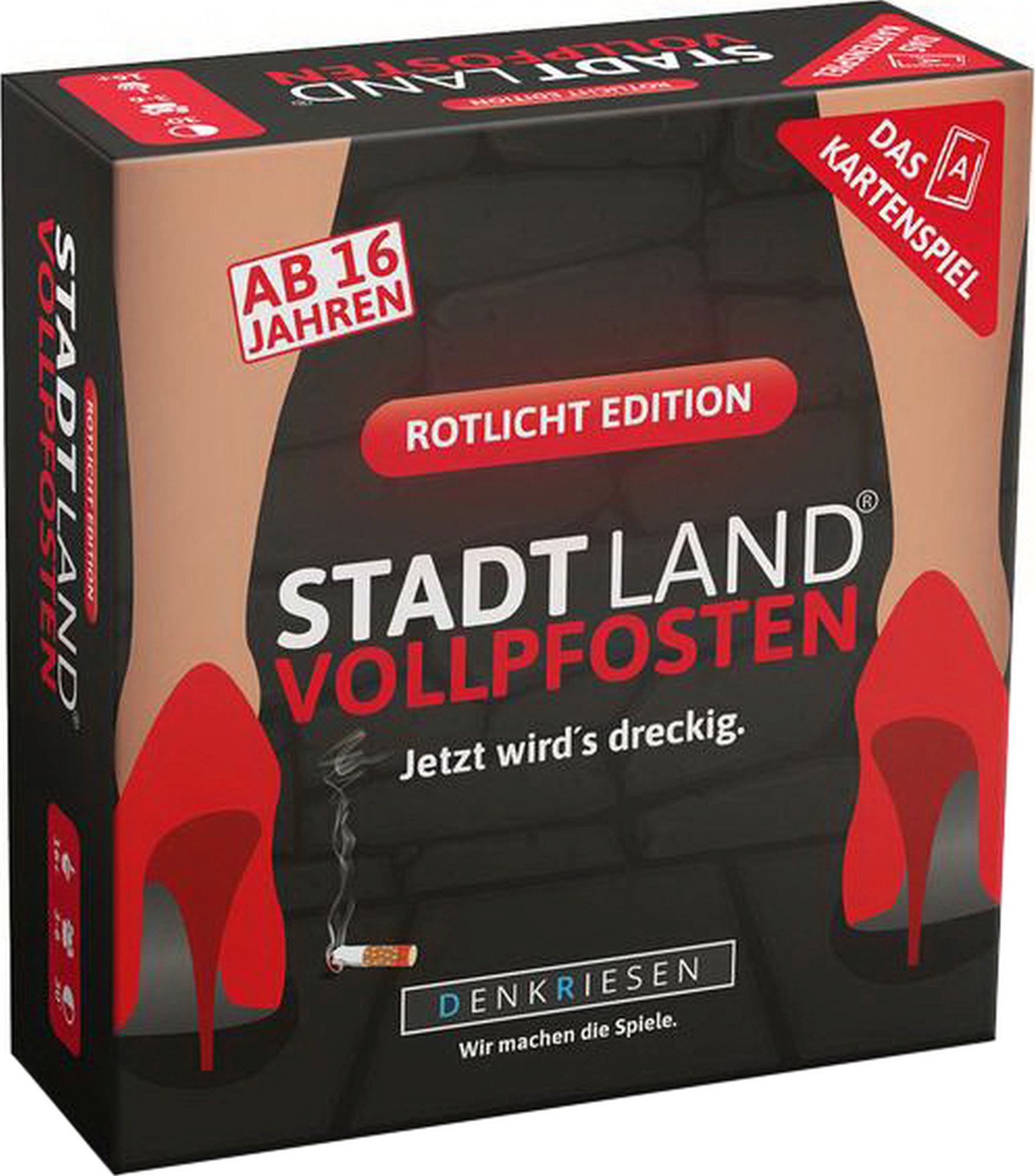 STADT LAND VOLLPFOSTEN® - Das Kartenspiel - ROTLICHT EDITION Jetzt wird's dreckig. Die unanständige Erweiterung des offiziellen Kartenspiels von STADT LAND VOLLPFOSTEN 120 Spielkarten mit 200 knallharten und versauten Kategorien, für ein unvergesslichen Spiele...