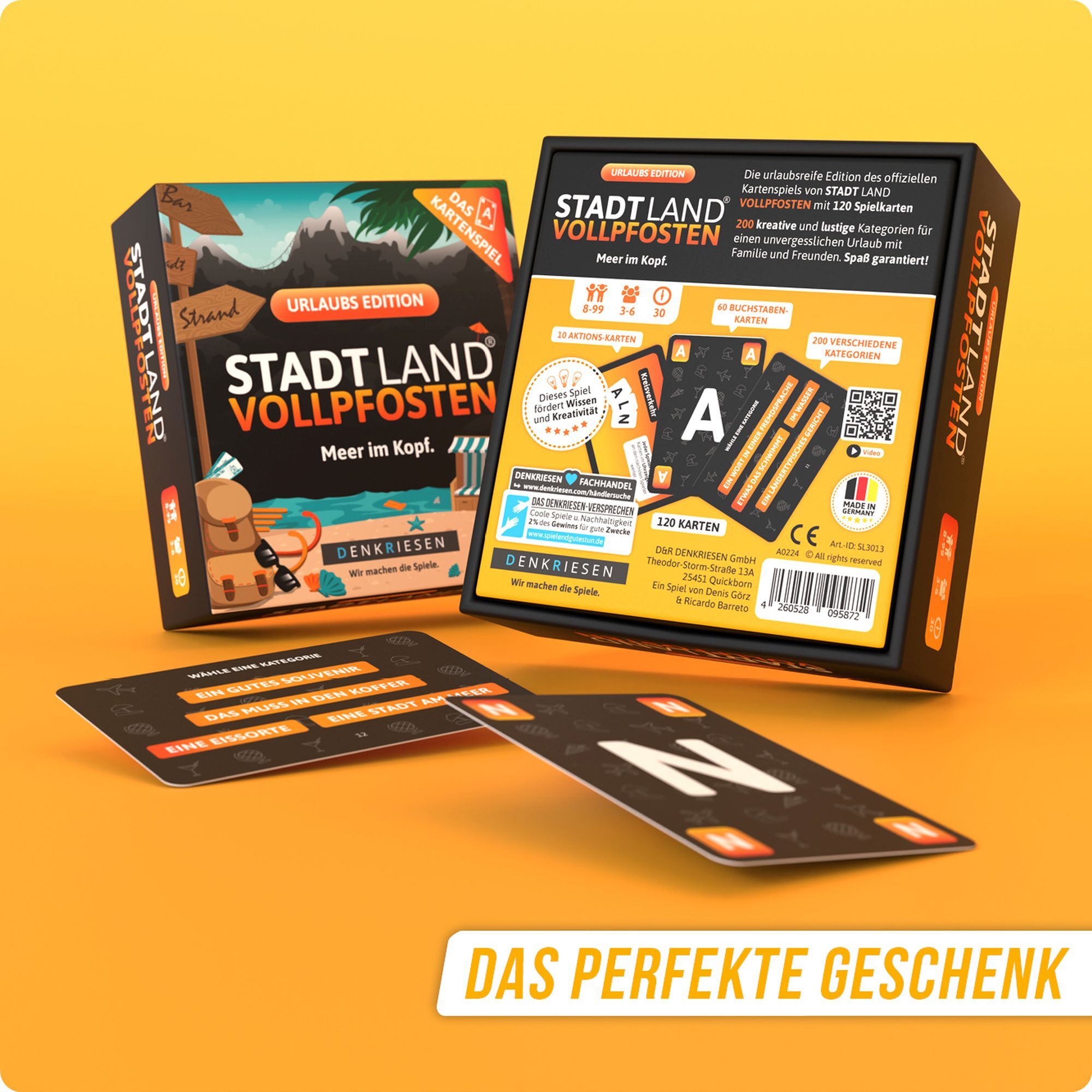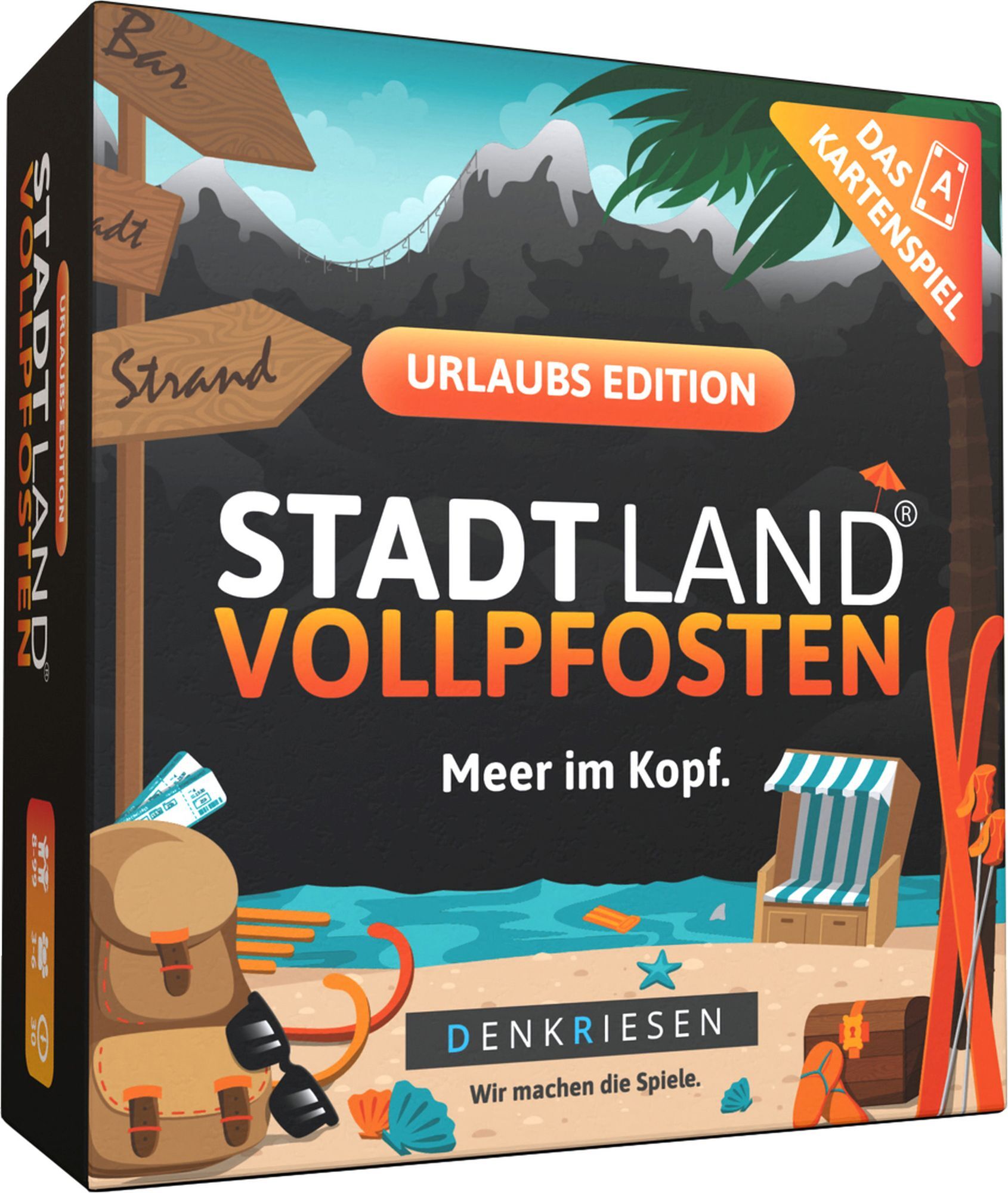 DENKRIESEN - STADT LAND VOLLPFOSTEN® - Das Kartenspiel - URLAUB EDITION - ''Meer im Kopf.'' Die urlaubsreife Edition des offiziellen Kartenspiels von STADT LAND VOLLPFOSTEN mit 120 Spielkarten.200 kreative und lustige Kategorien für einen unvergesslichen Urlau...